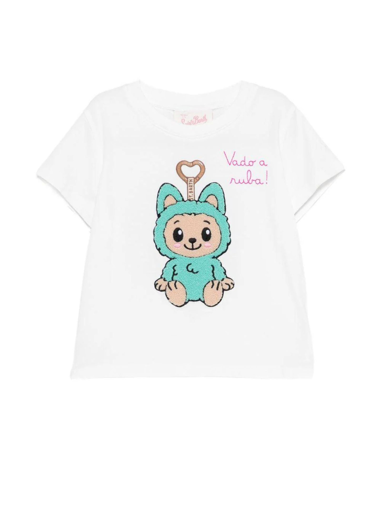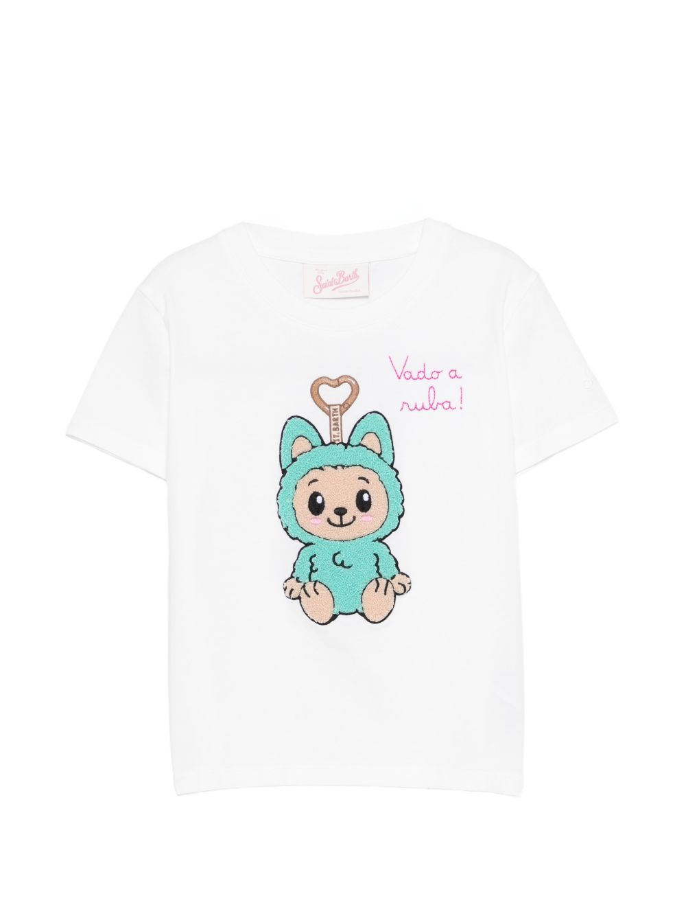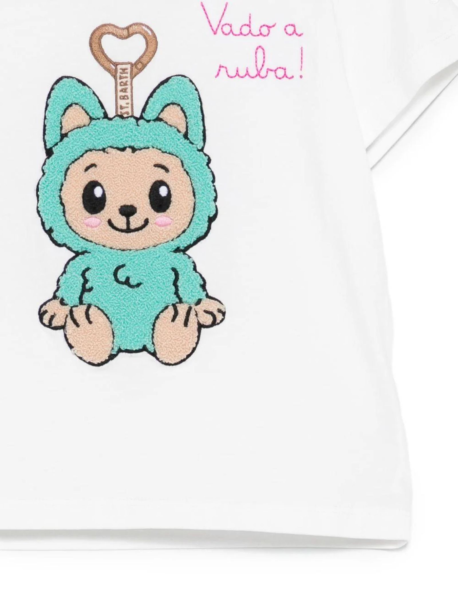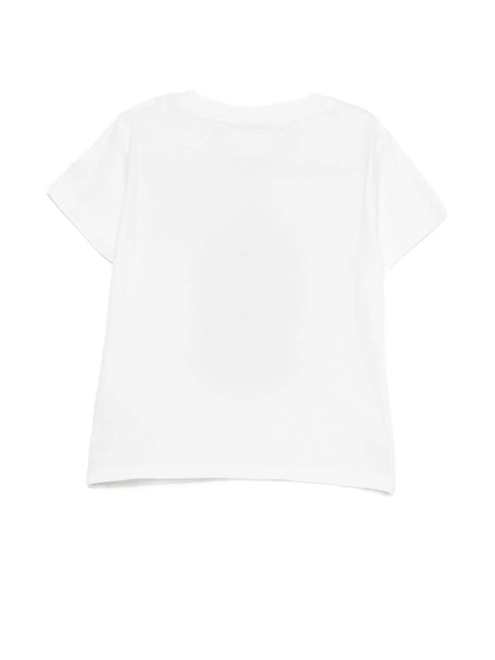 White cotton T-shirt, short sleeves, graphic print, round neckline