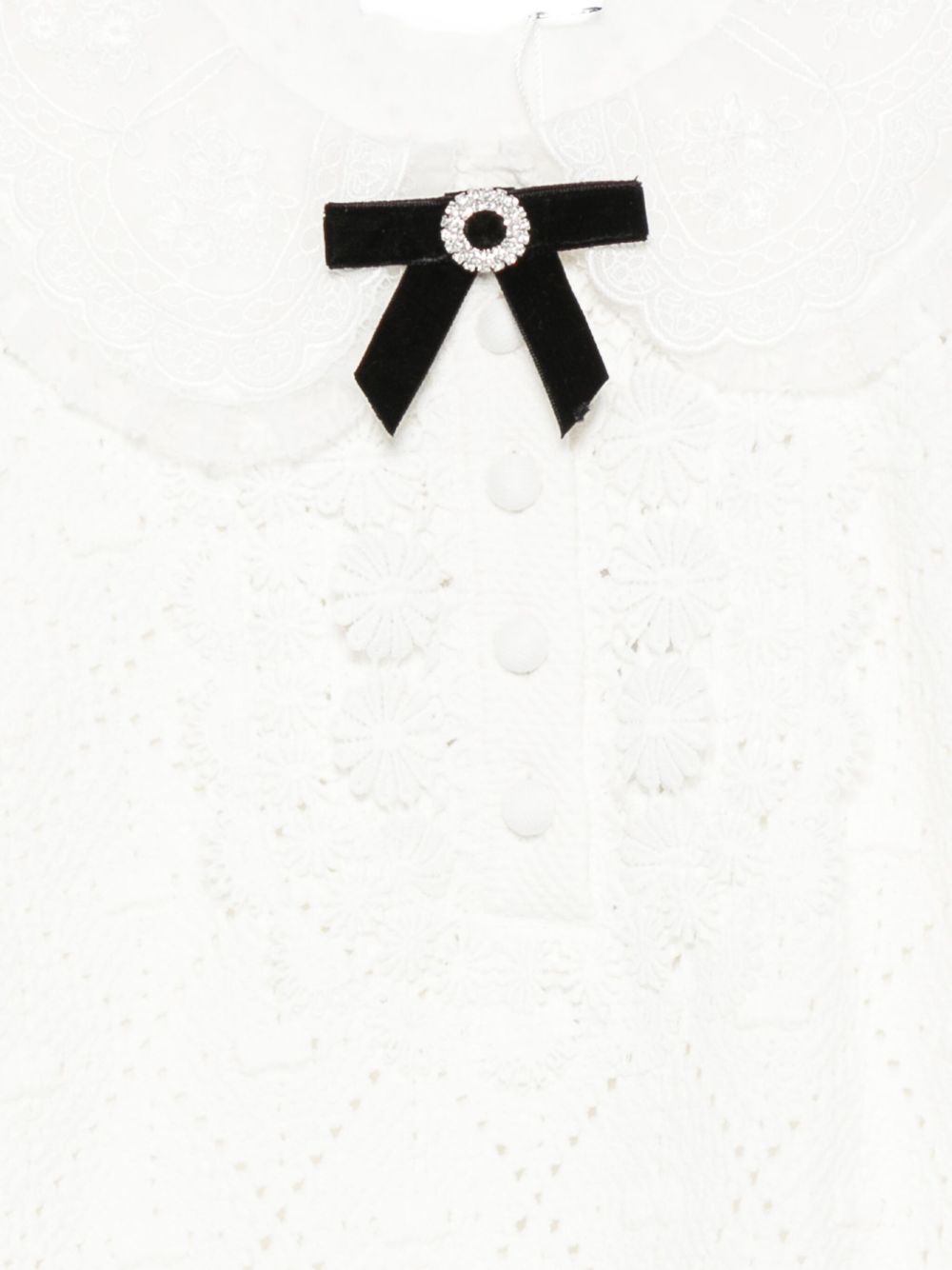 white peter-pan collar velvet bow crystal embellishment button fastening