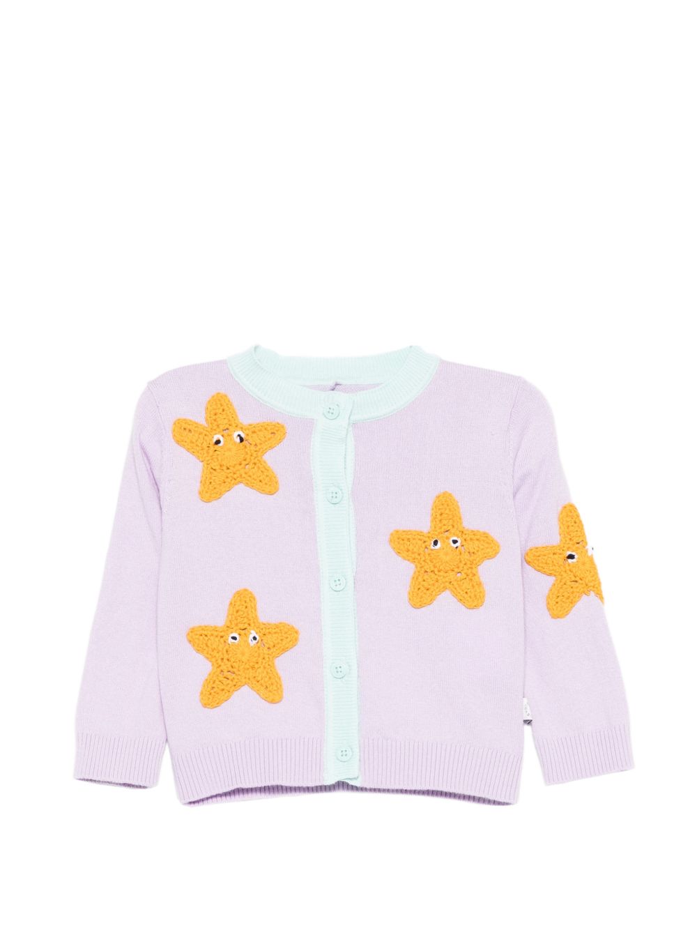 purple/multicolour cotton star appliqué round neck button fastening long sleeves ribbed trim