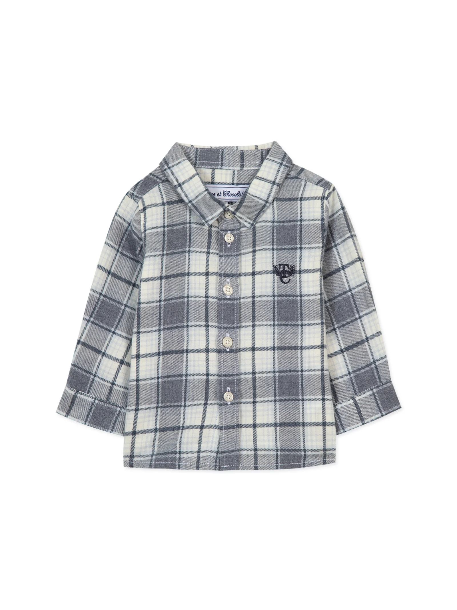 Light Gray China Check Pattern Cotton Shirt, long sleeves, classic collar, logo embroidery on chest