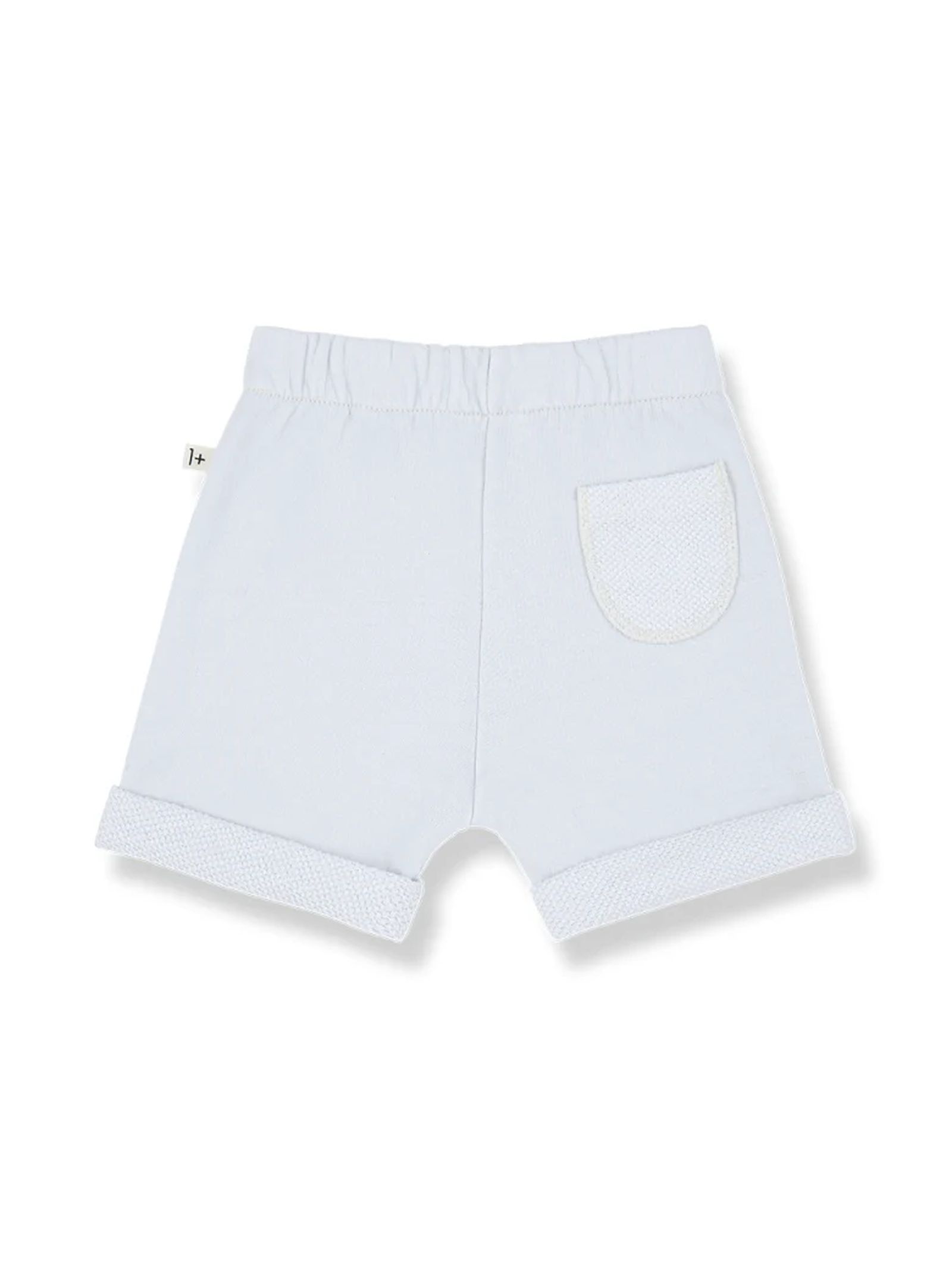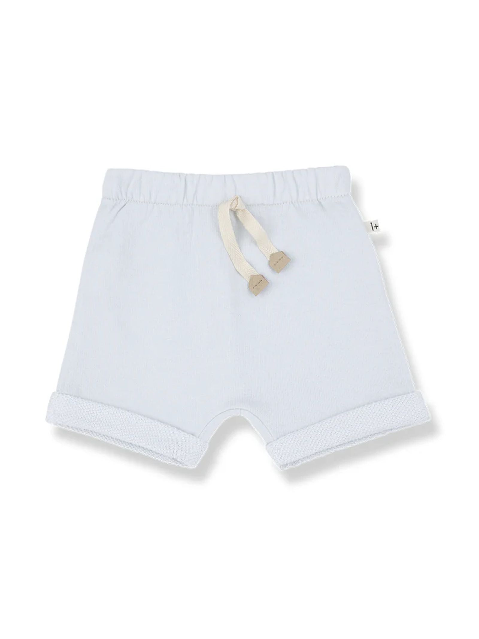Bermuda in cotone blu con vita morbida, coulisse, risvolto sul fondo