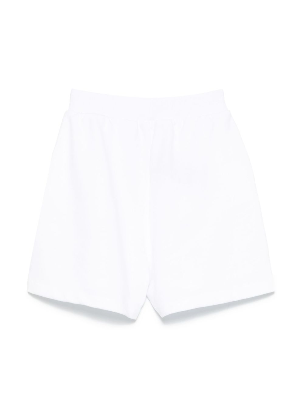 Bianco, elastico in vita, due tasche diagonali ai lati, logo, bottoni in rilievo