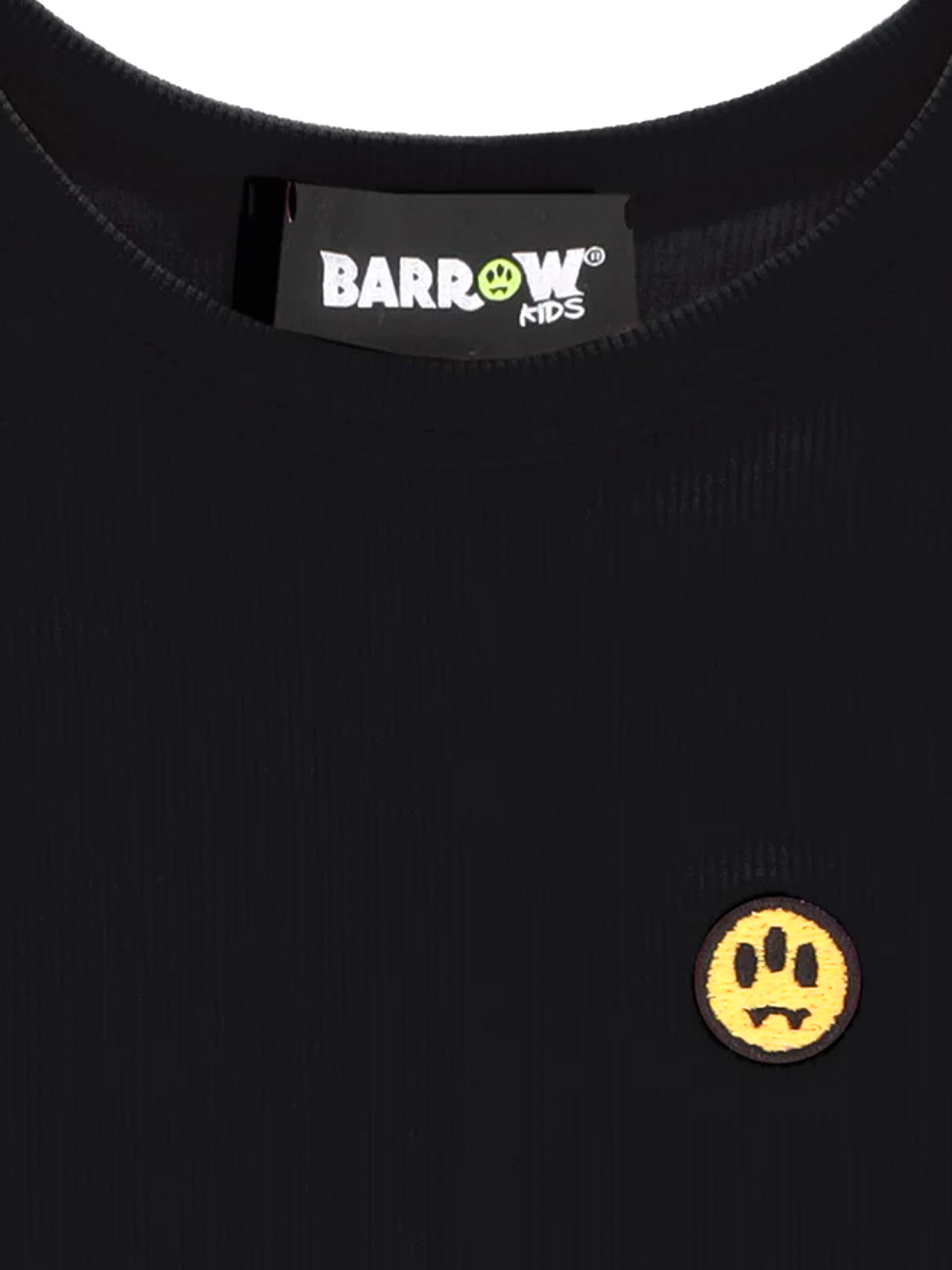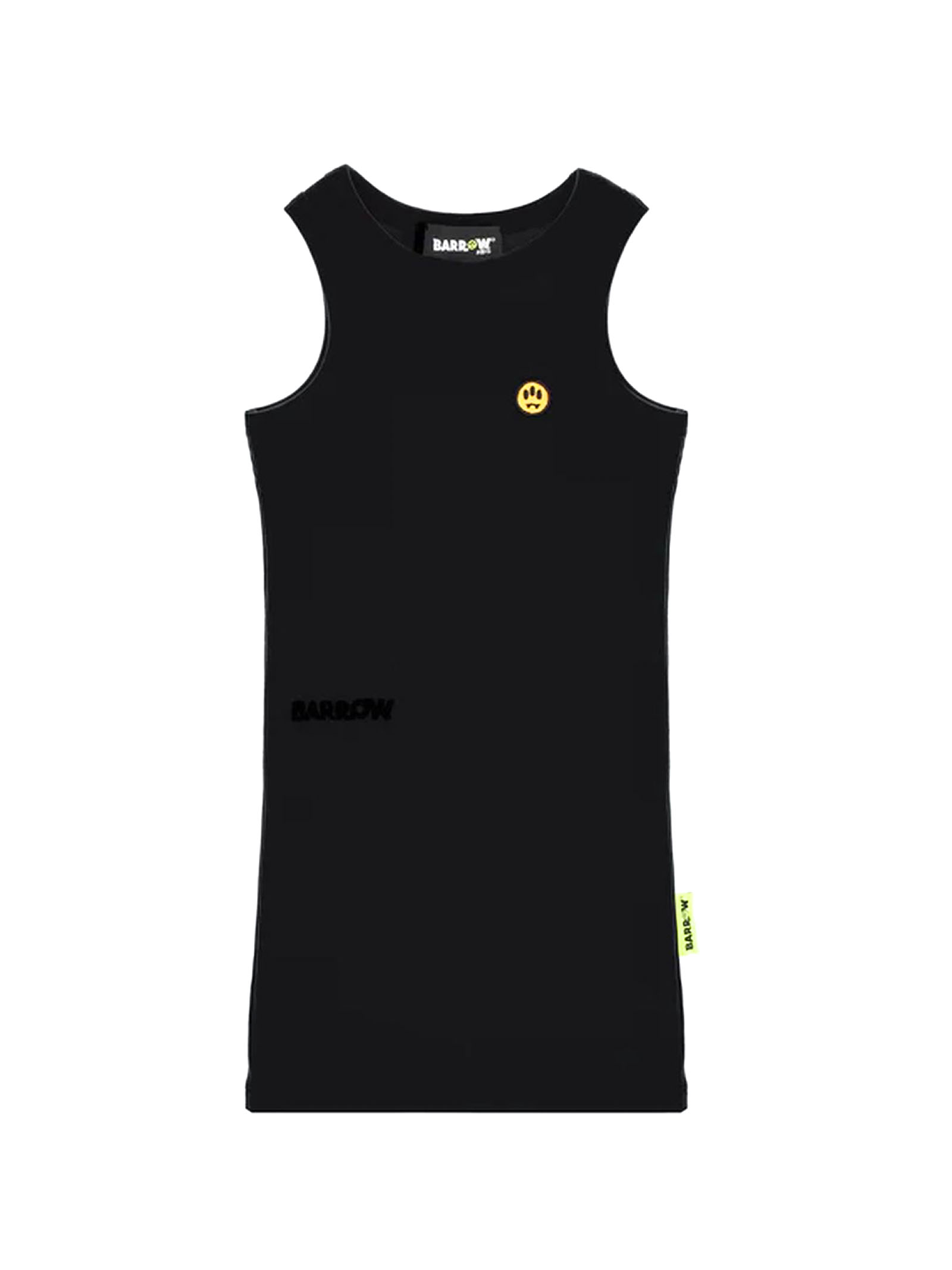 Abito da bambina in jersey a costine con spalline ampie e bordi a contrasto elasticizzati, morbido e facile da indossare; il tessuto stretch accompagna ogni movimento e lo smiley Barrow stampato sul petto98% COTONE 2% ELASTAN