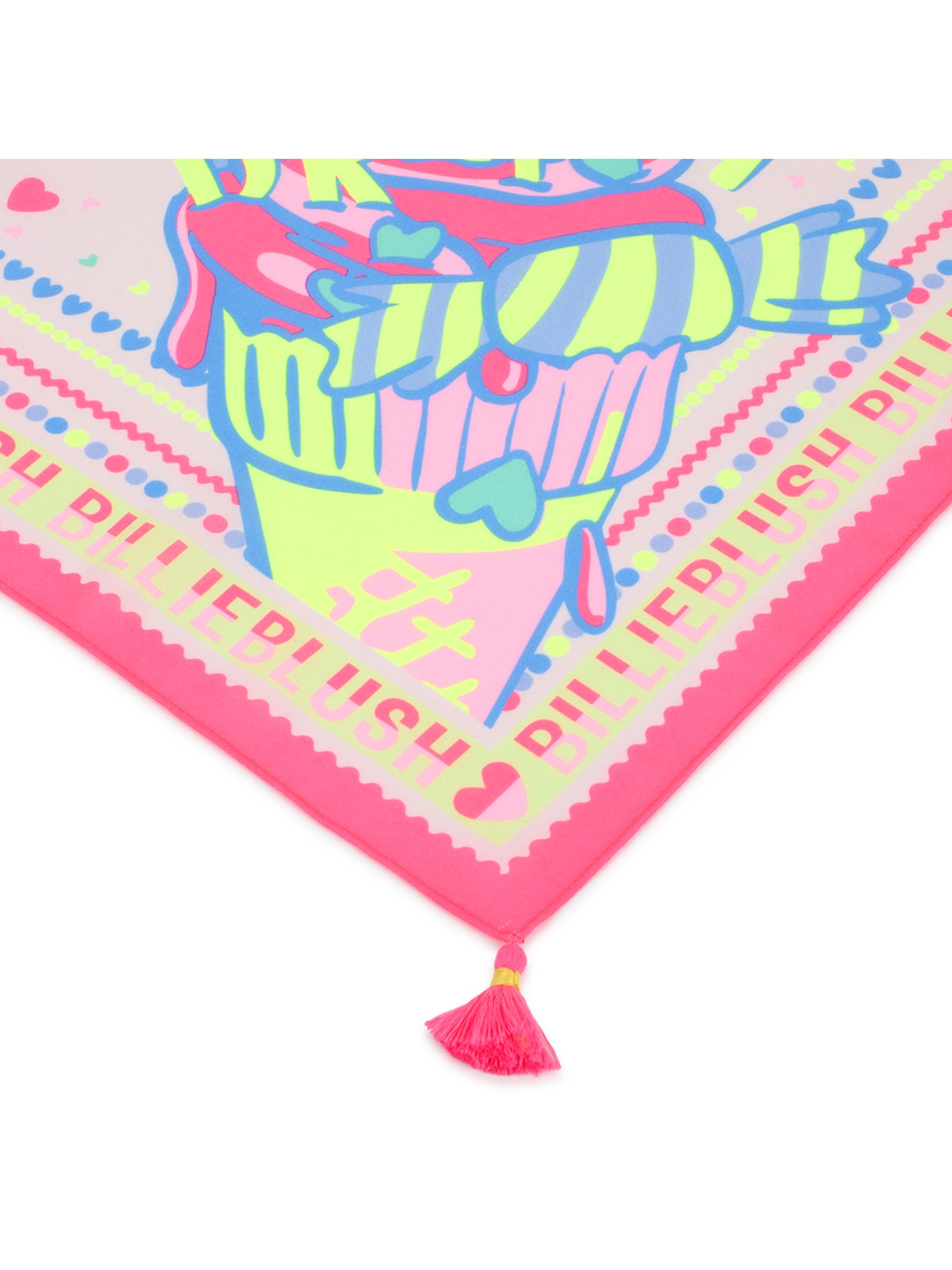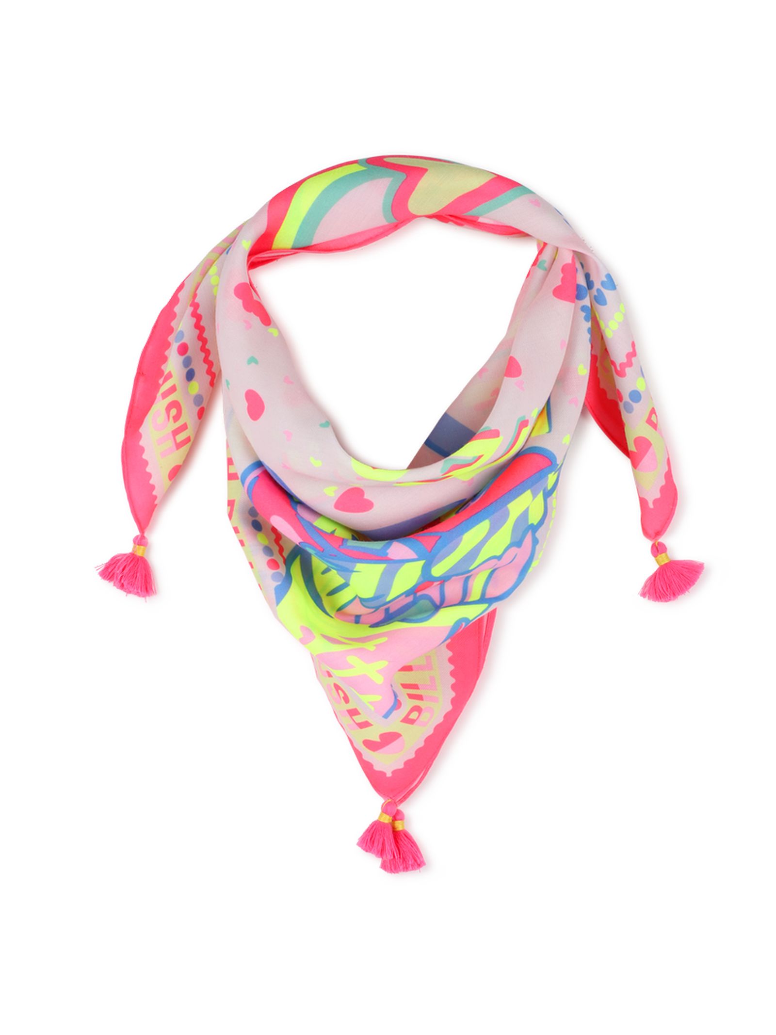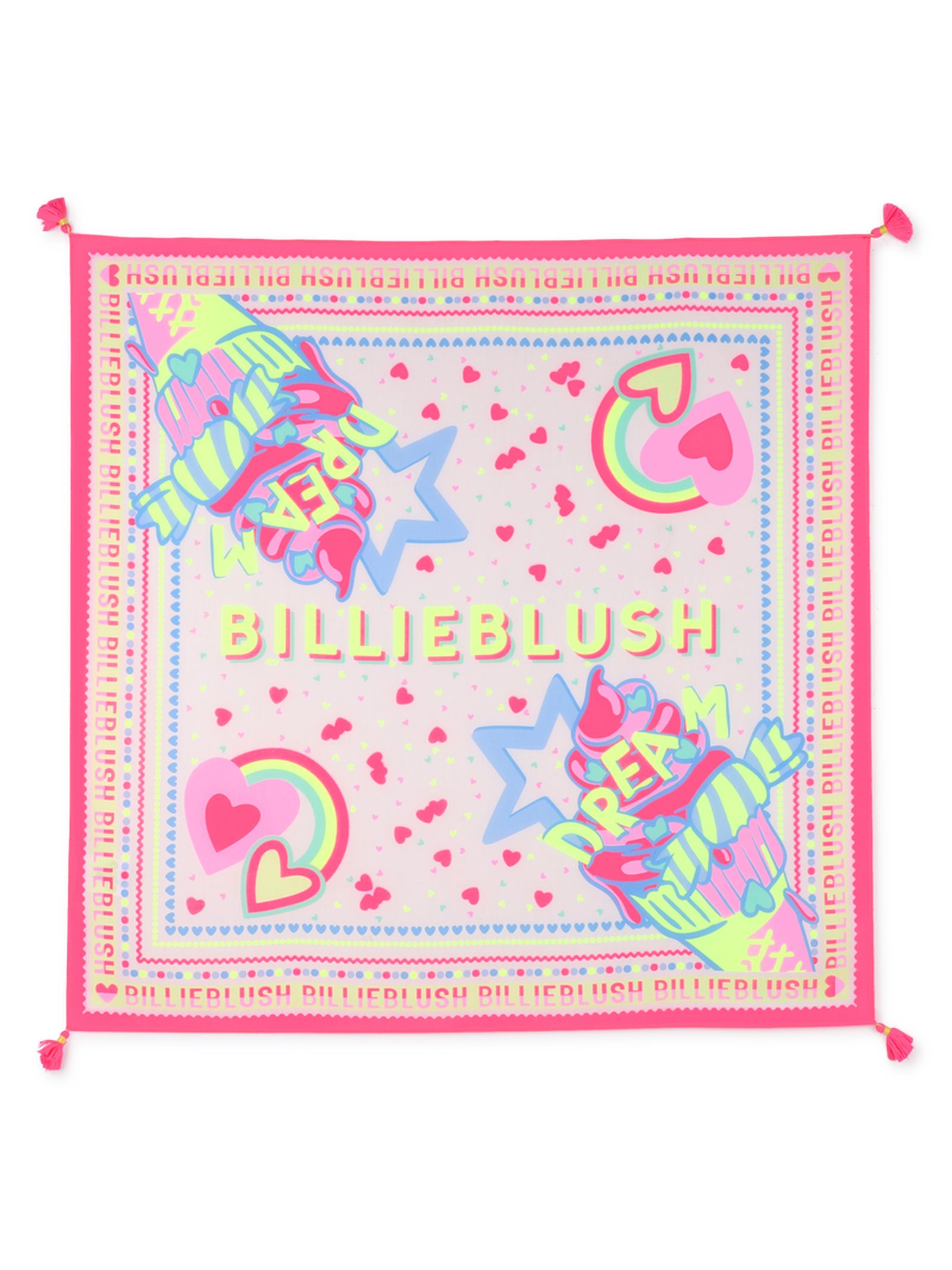 Sciarpa con stampa fantasia: un tocco delicato per gli outfit dei nostri piccoli avventurieri. Questa sciarpa con stampa fantasia di BILLIEBLUSH aggiunge una nota giocosa e raffinata. I pompon agli angoli danzano ad ogni movimento e il formato 65x65 cm permette di annodarla facilmente al collo o su una borsa. Adoriamo la sua capacità di trasformare un look semplice in un tesoro quotidiano. 100% poliestere