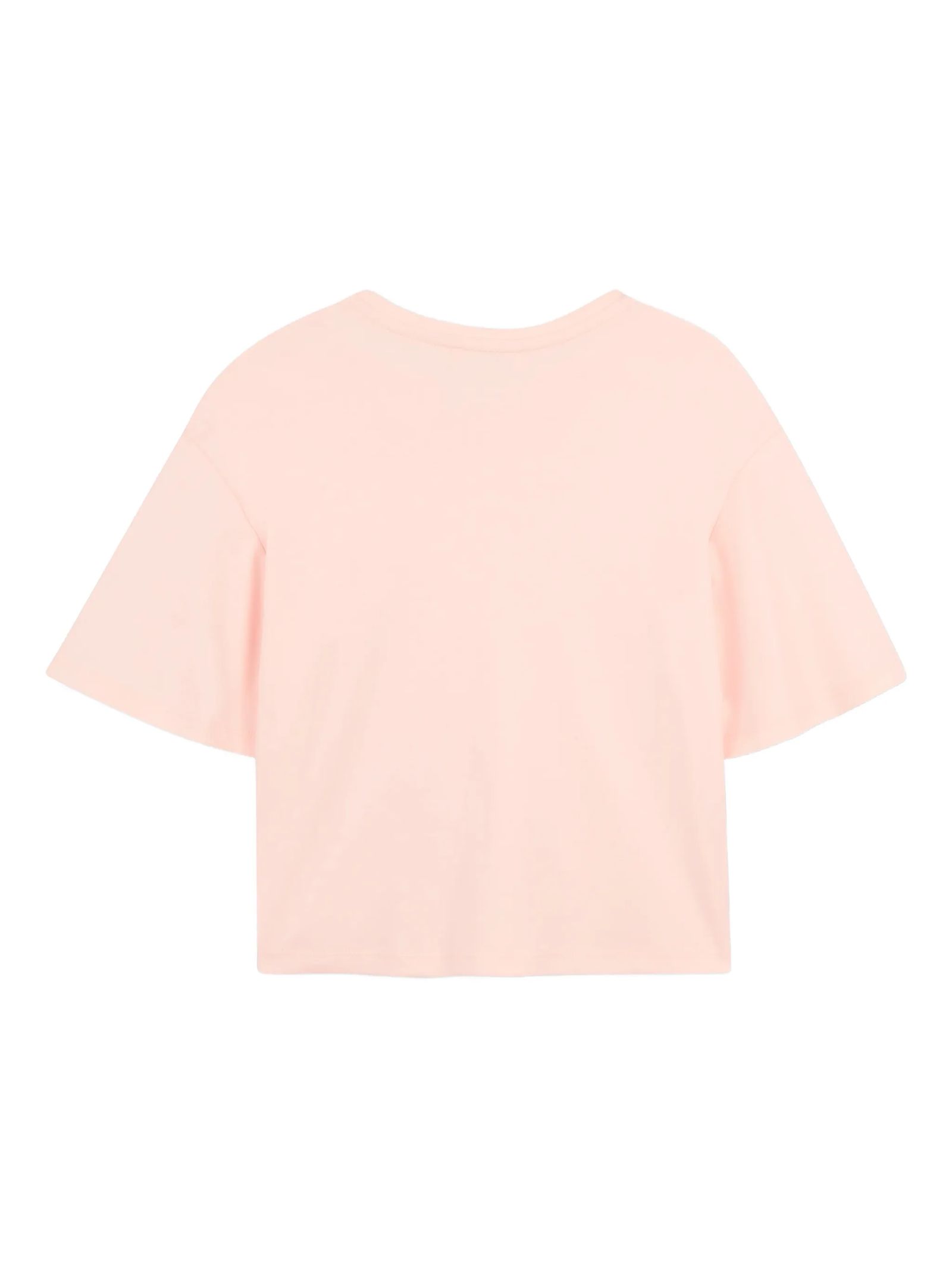 T-shirt in cotone rosa con stampa, dettaglio logo, girocollo