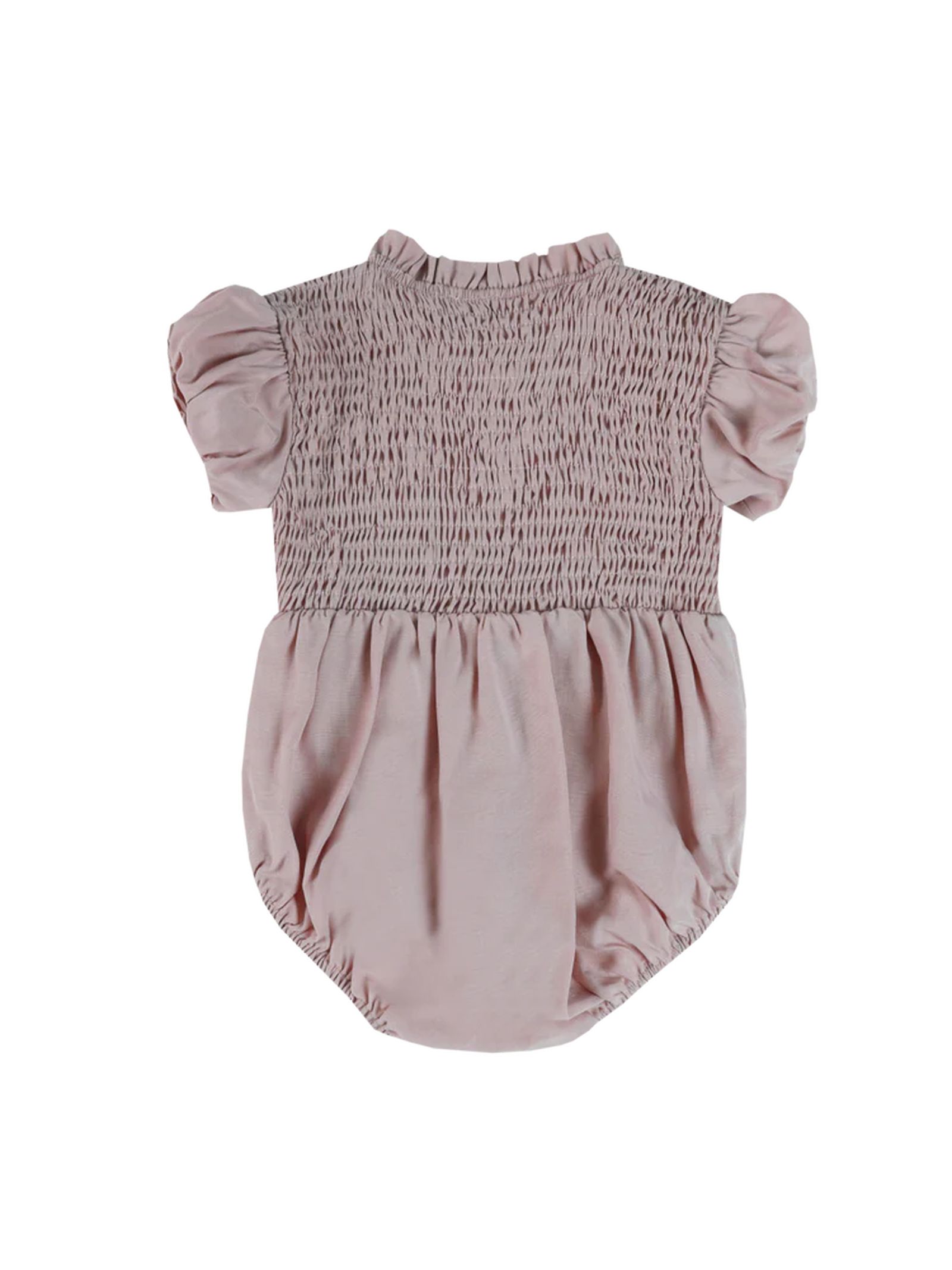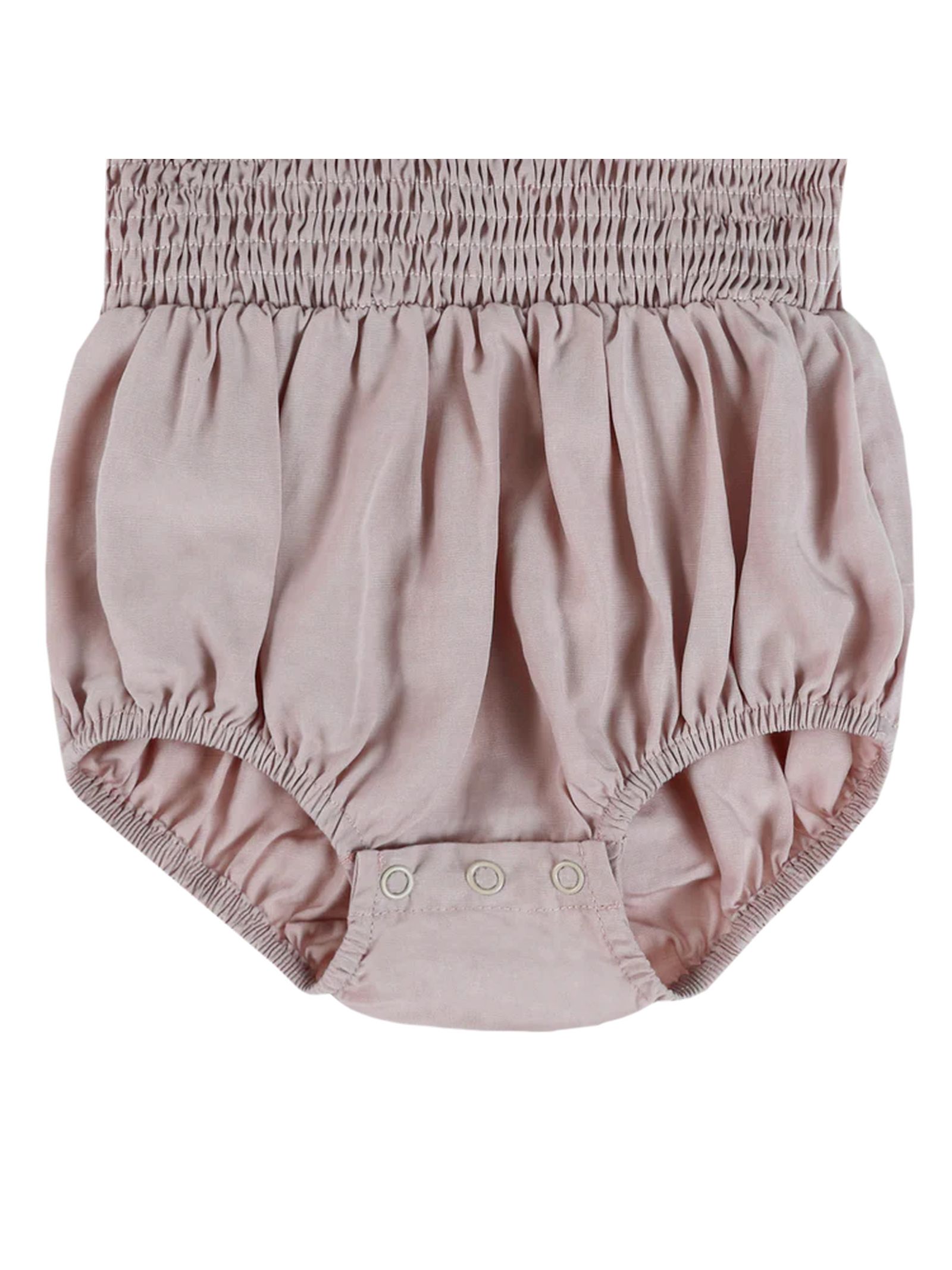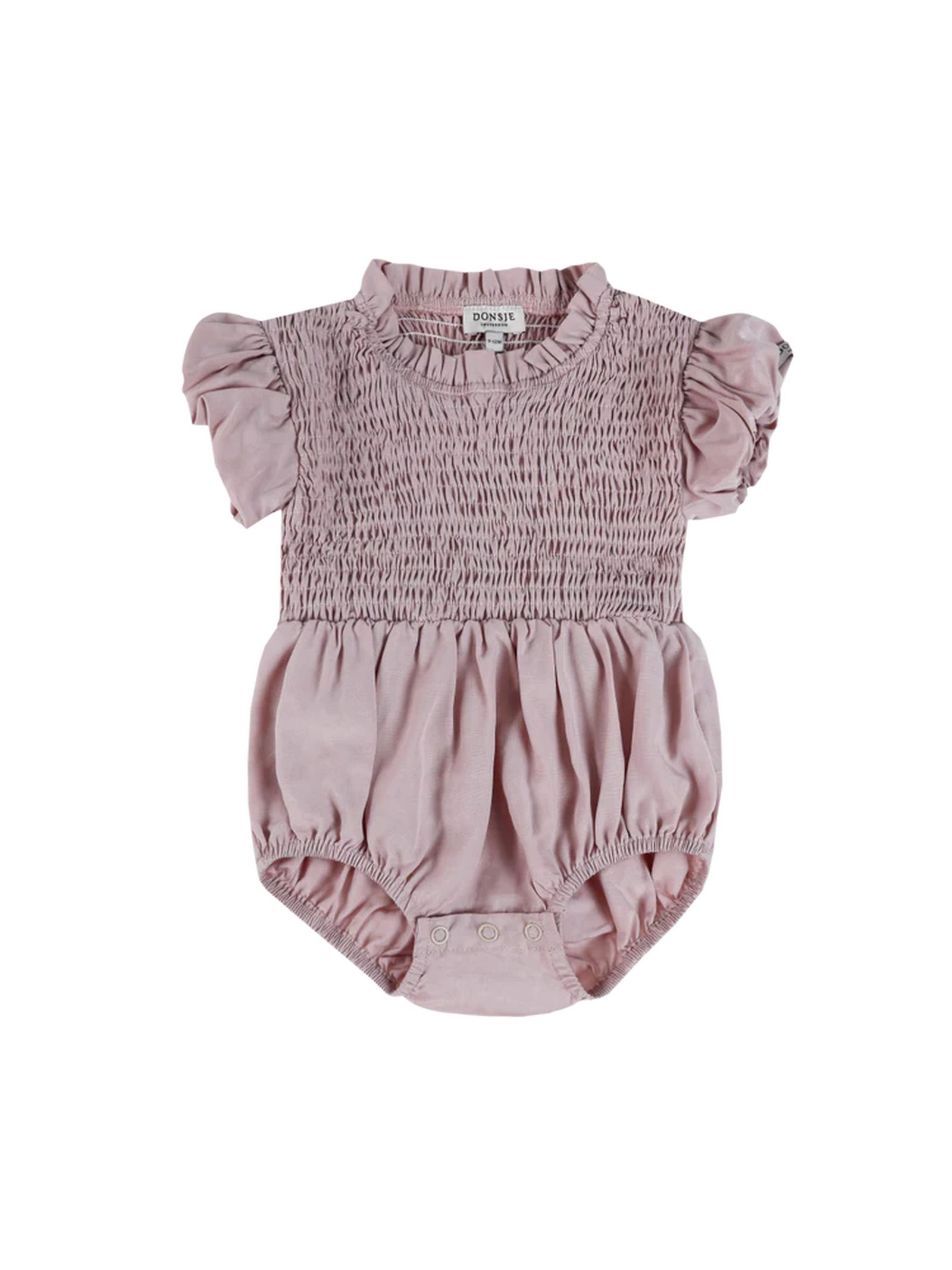 Body Eledor rosa blush, caratterizzato da un corpetto splendidamente smockato, delicate maniche con volant e dettagli arricciati in vita, che creano una silhouette morbidamente voluminosa. Progettato con cura per garantire comfort e praticità, presenta una comoda chiusura con bottoni a pressione e un leggero effetto elasticizzato intorno alle gambe. 92% Tencel, 8% lino