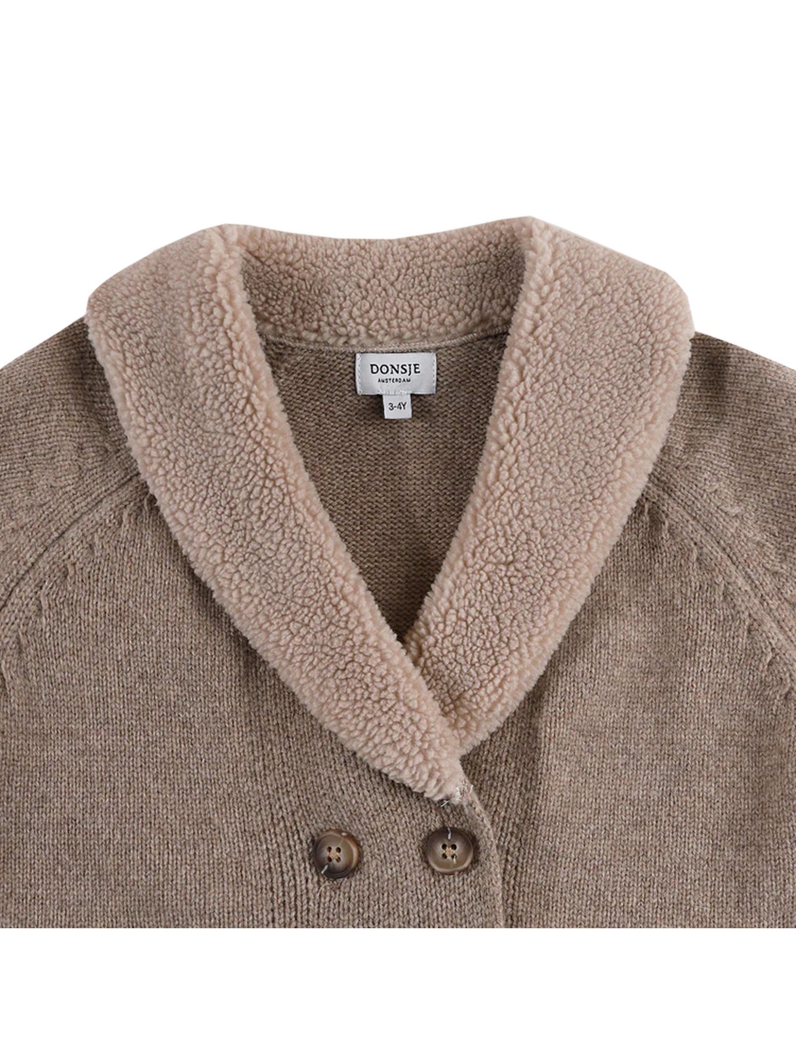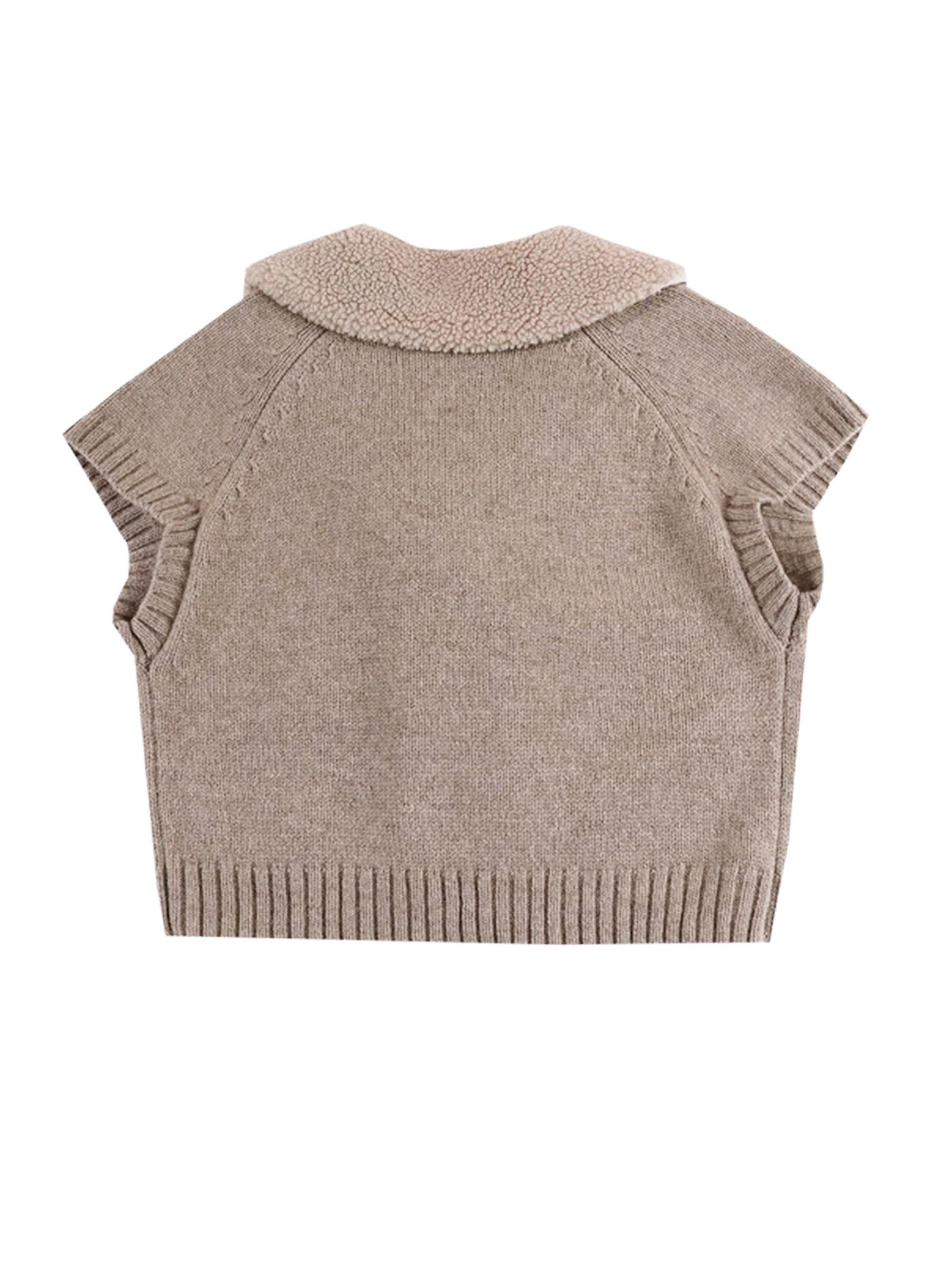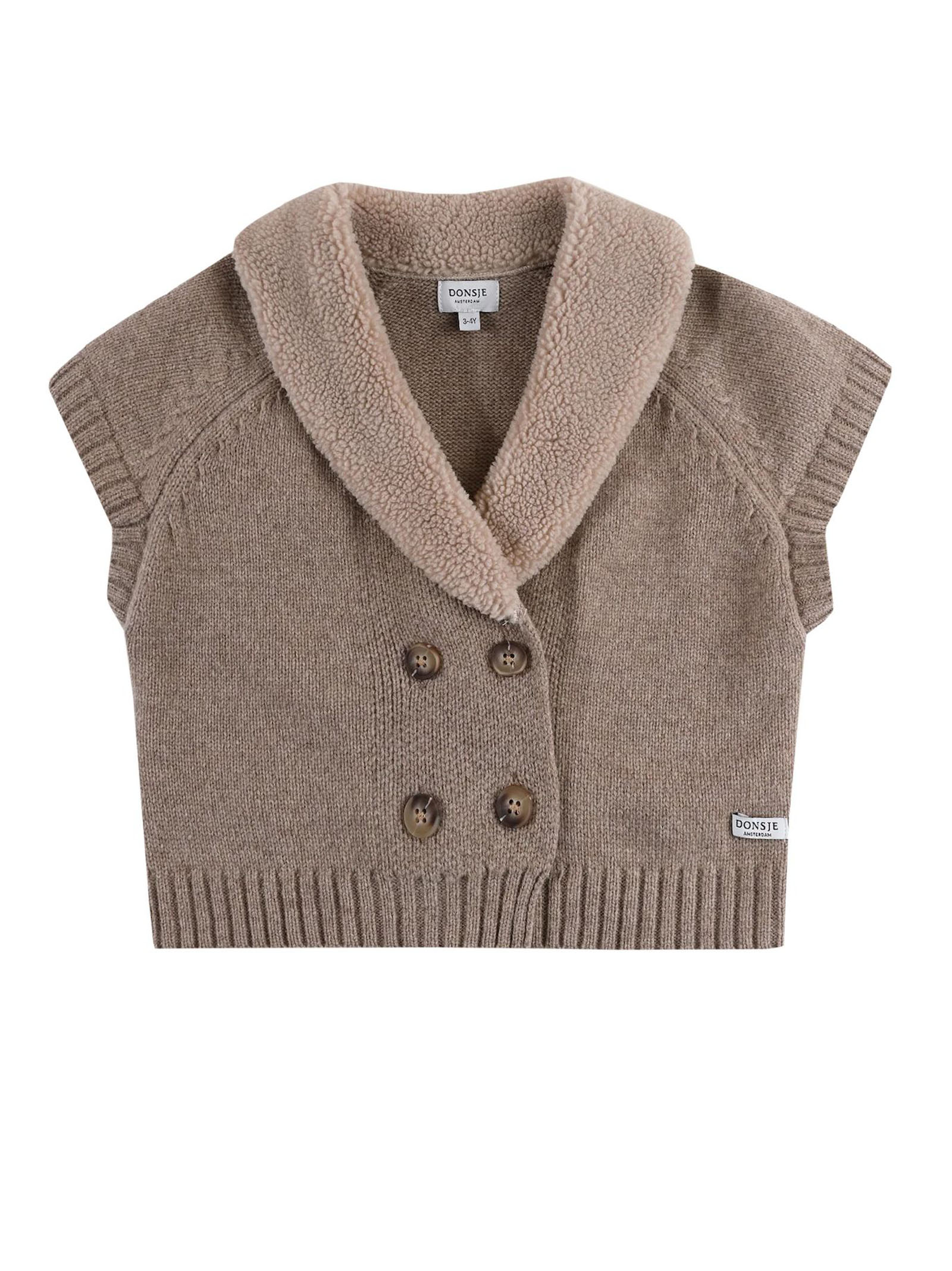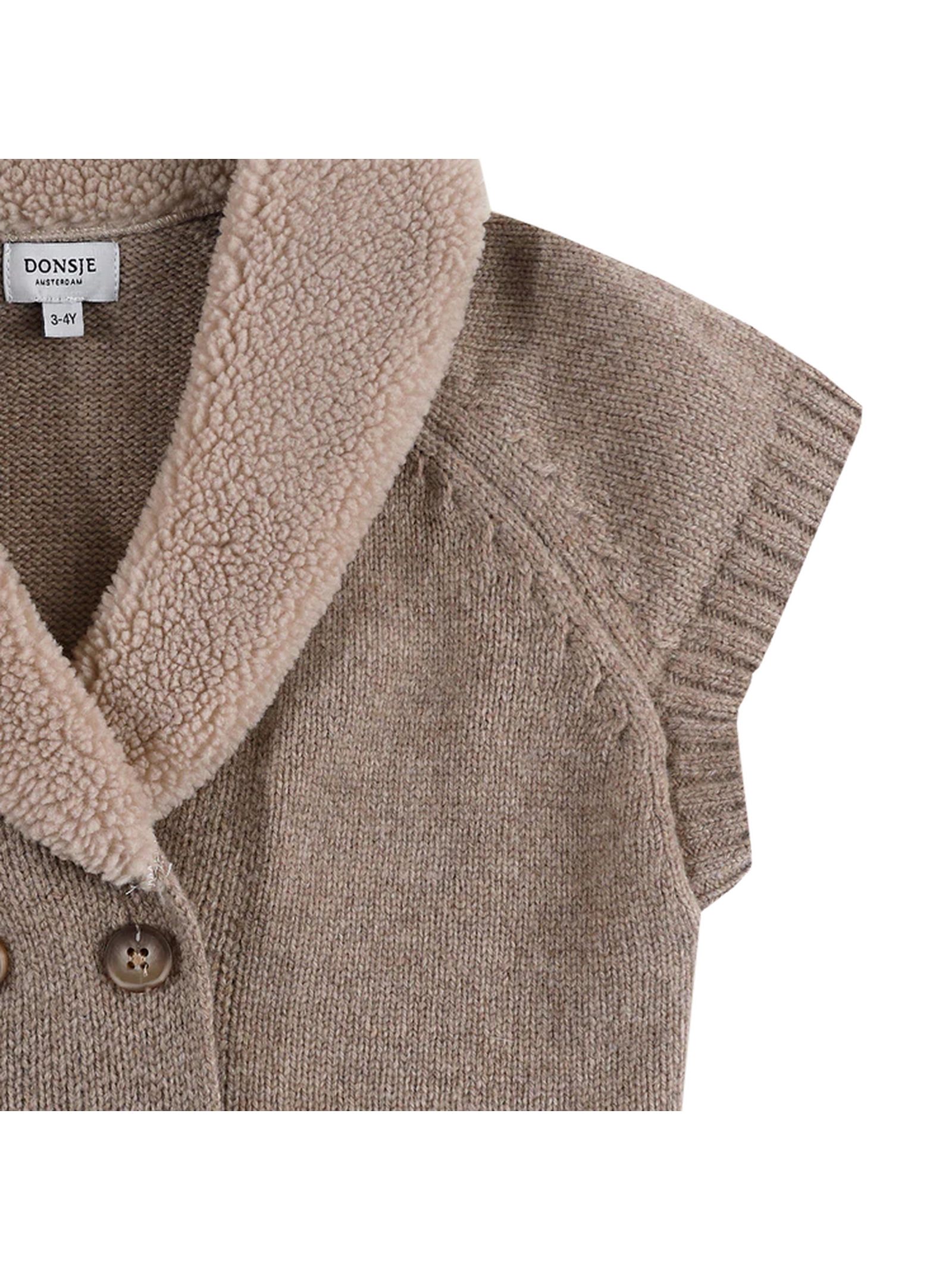 Gilet Nannie in lana merino Soft Marrone, doppiopetto con chiusura a bottoni, senza maniche, bordi a costine.