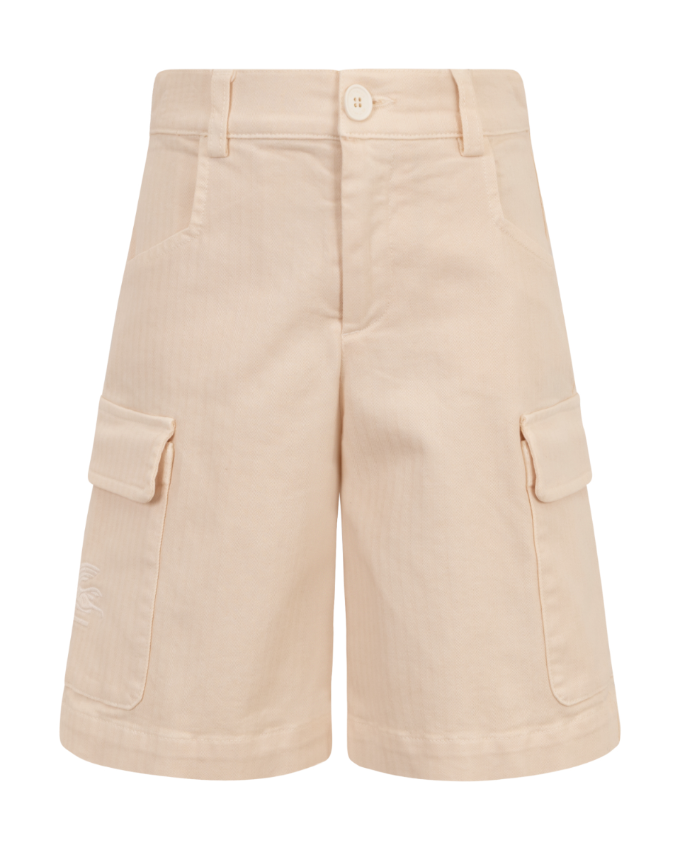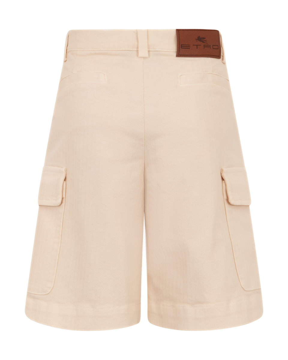 Bermuda Etro panna con chiusura con bottone e cerniera, passanti, tasche con patta e motivo a spina di pesce.