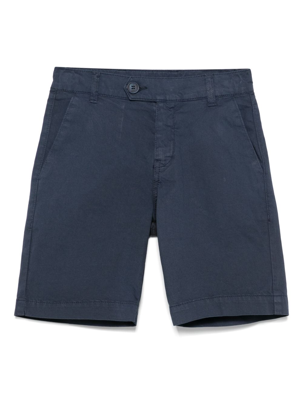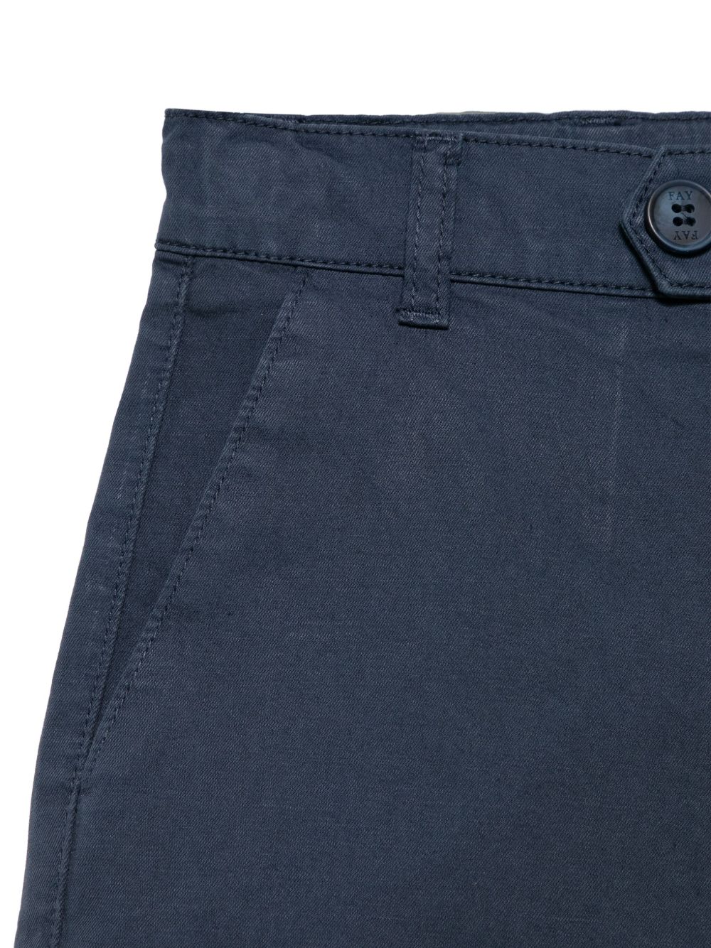 blu prussiana chiusura a bottone e cerniera due tasche laterali due tasche posteriori con passanti per cintura