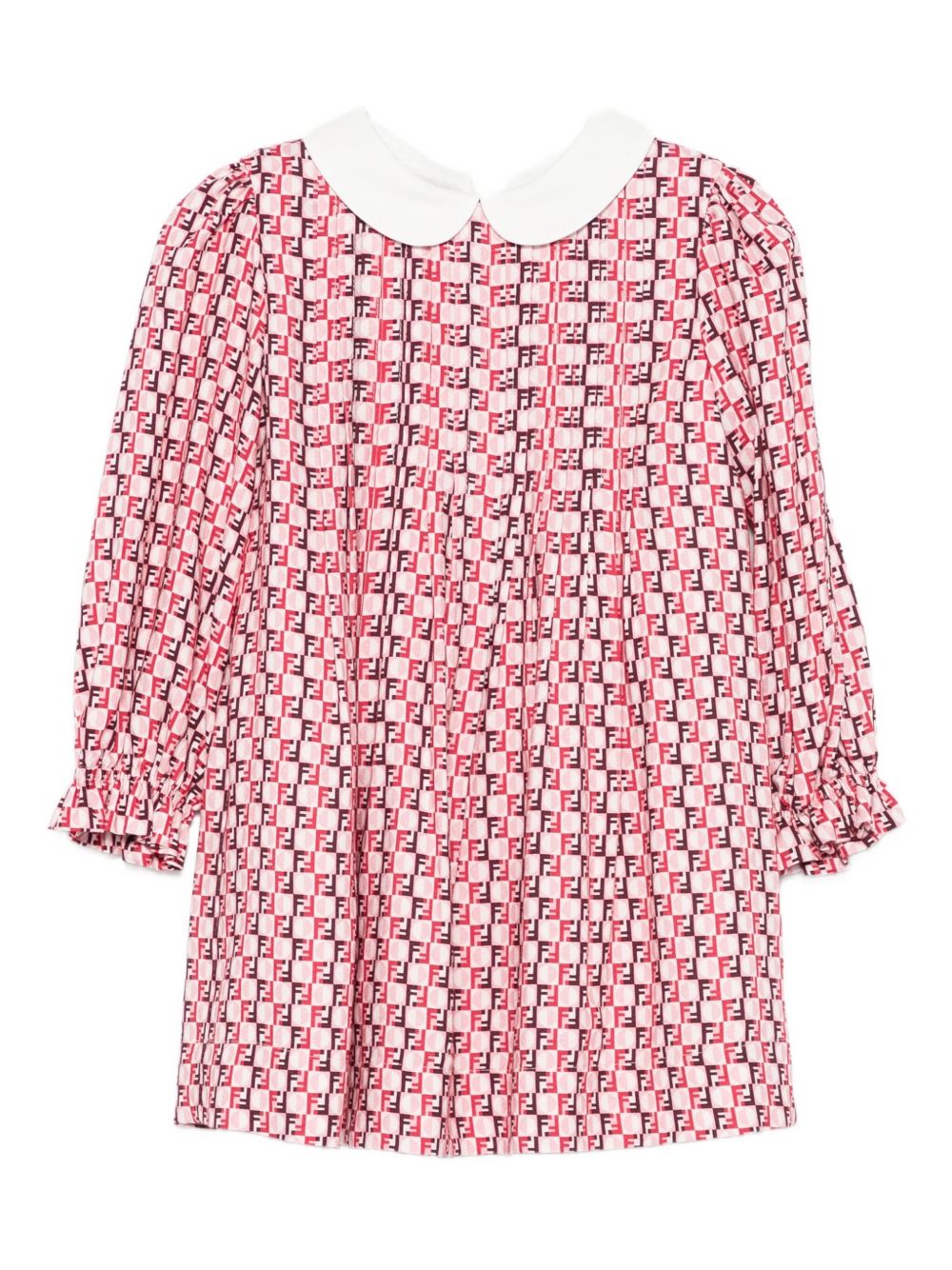 colletto alla Peter Pan rosso, maniche lunghe, dettaglio plissettato, chiusura posteriore con zip nascosta