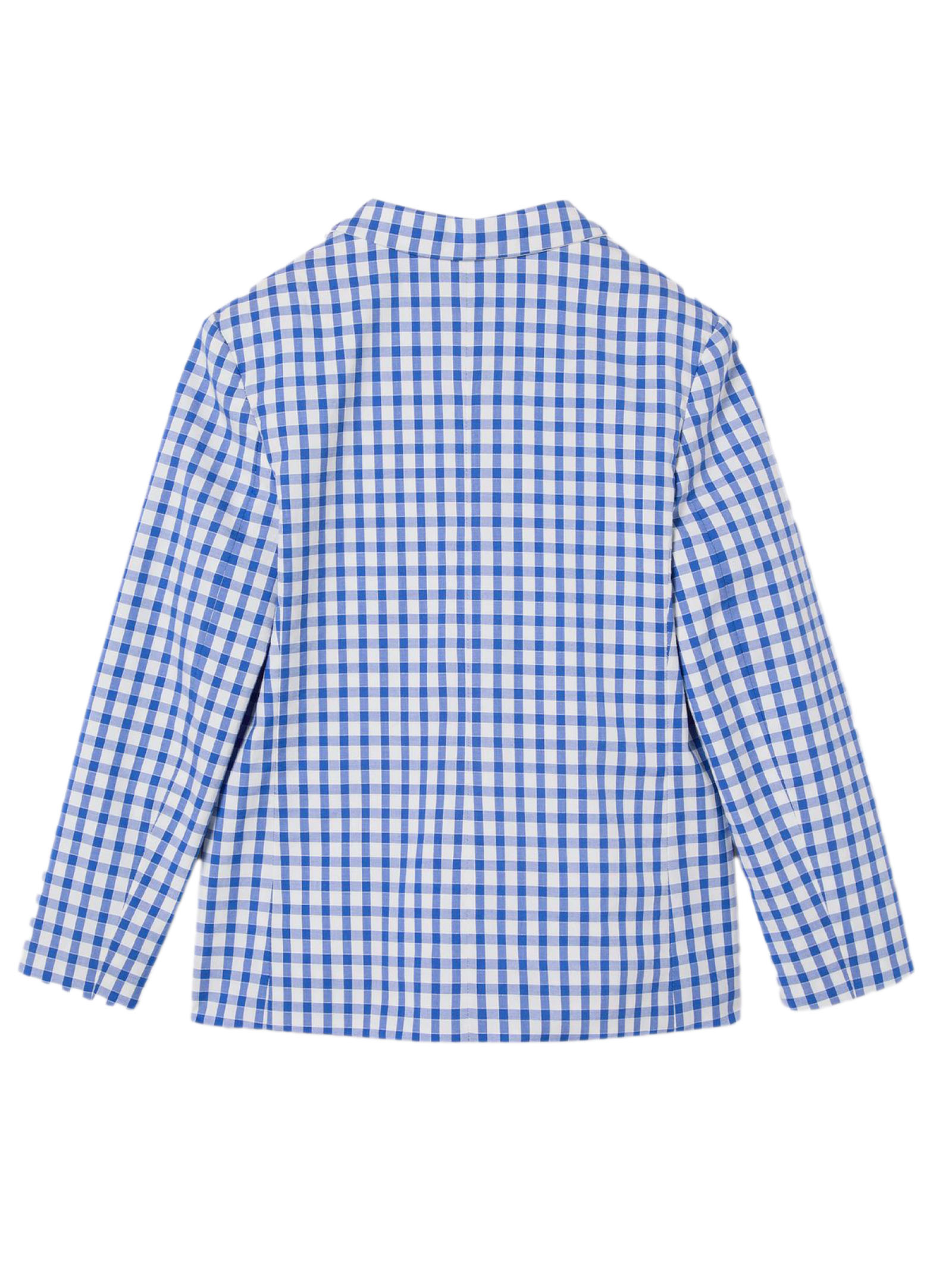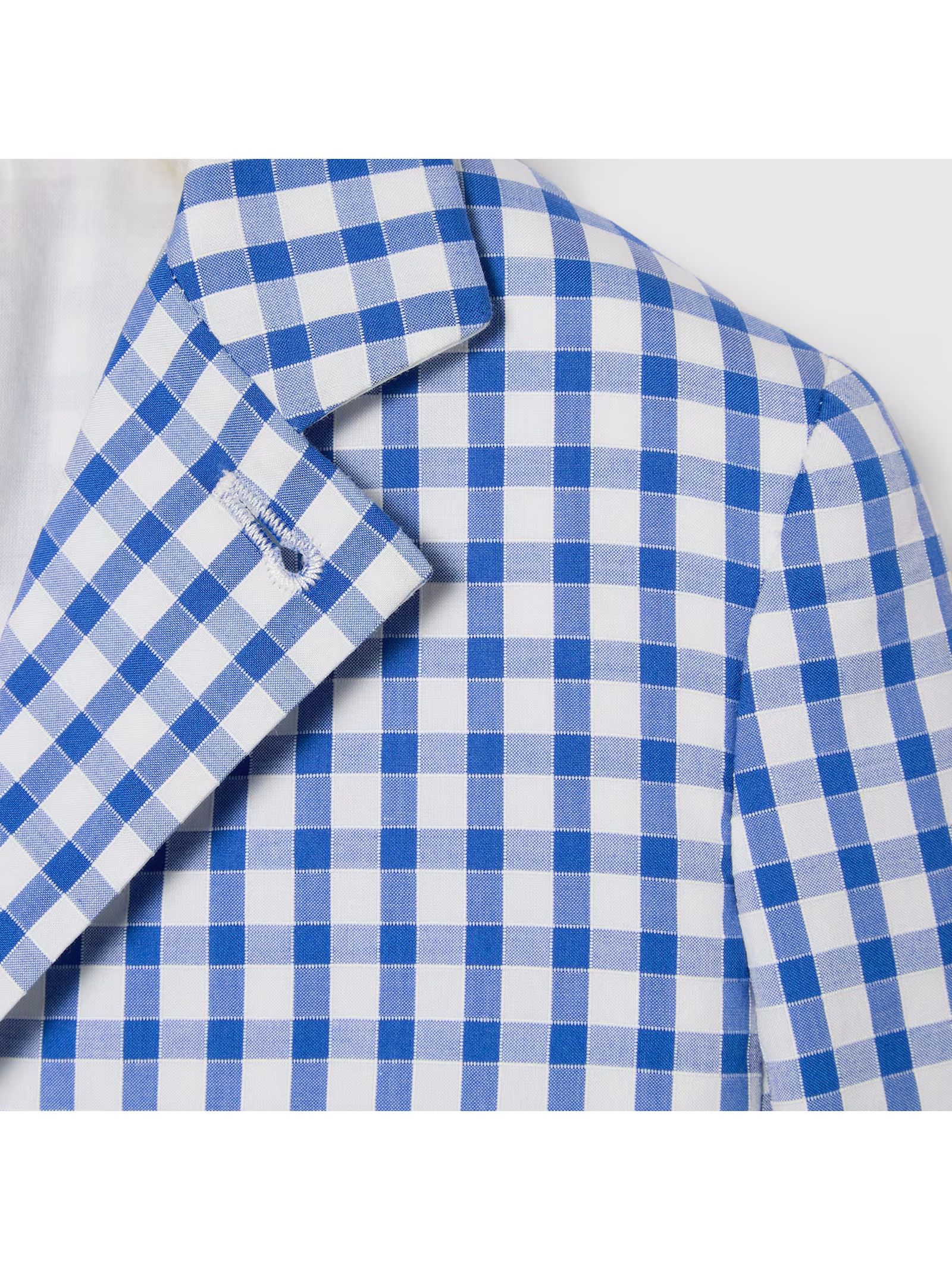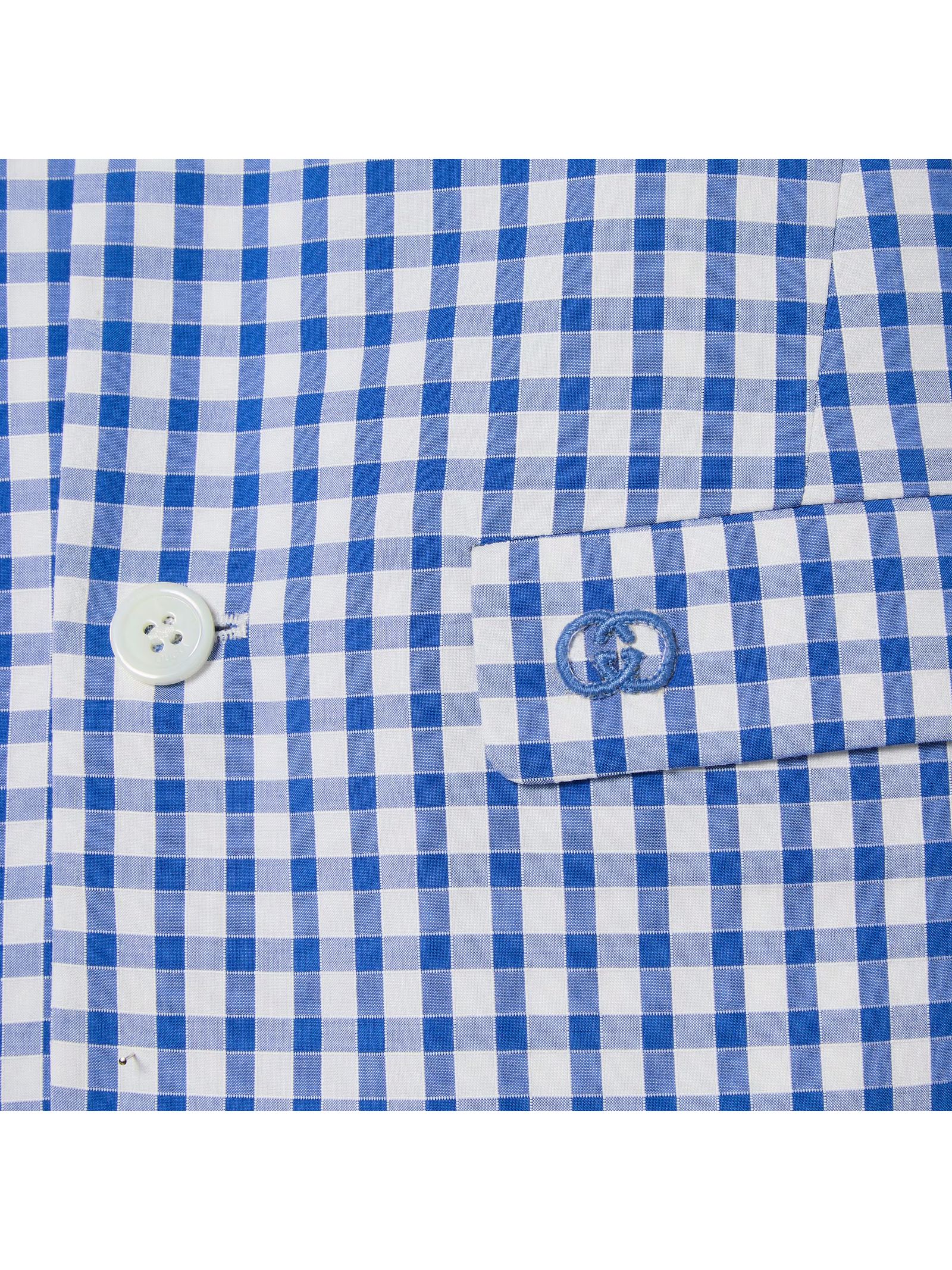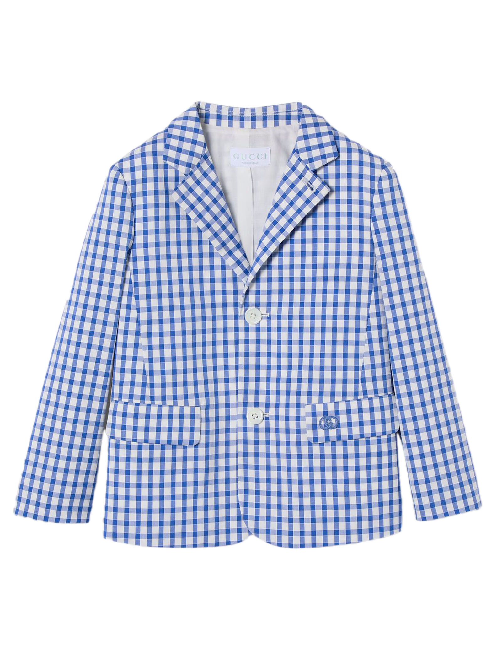 Giacca bambino in cotone a quadretti blu, ricamo Incrocio GG, Fodera in cotone, Colletto aperto, Maniche lunghe, Due tasche frontali, Chiusura con bottoni