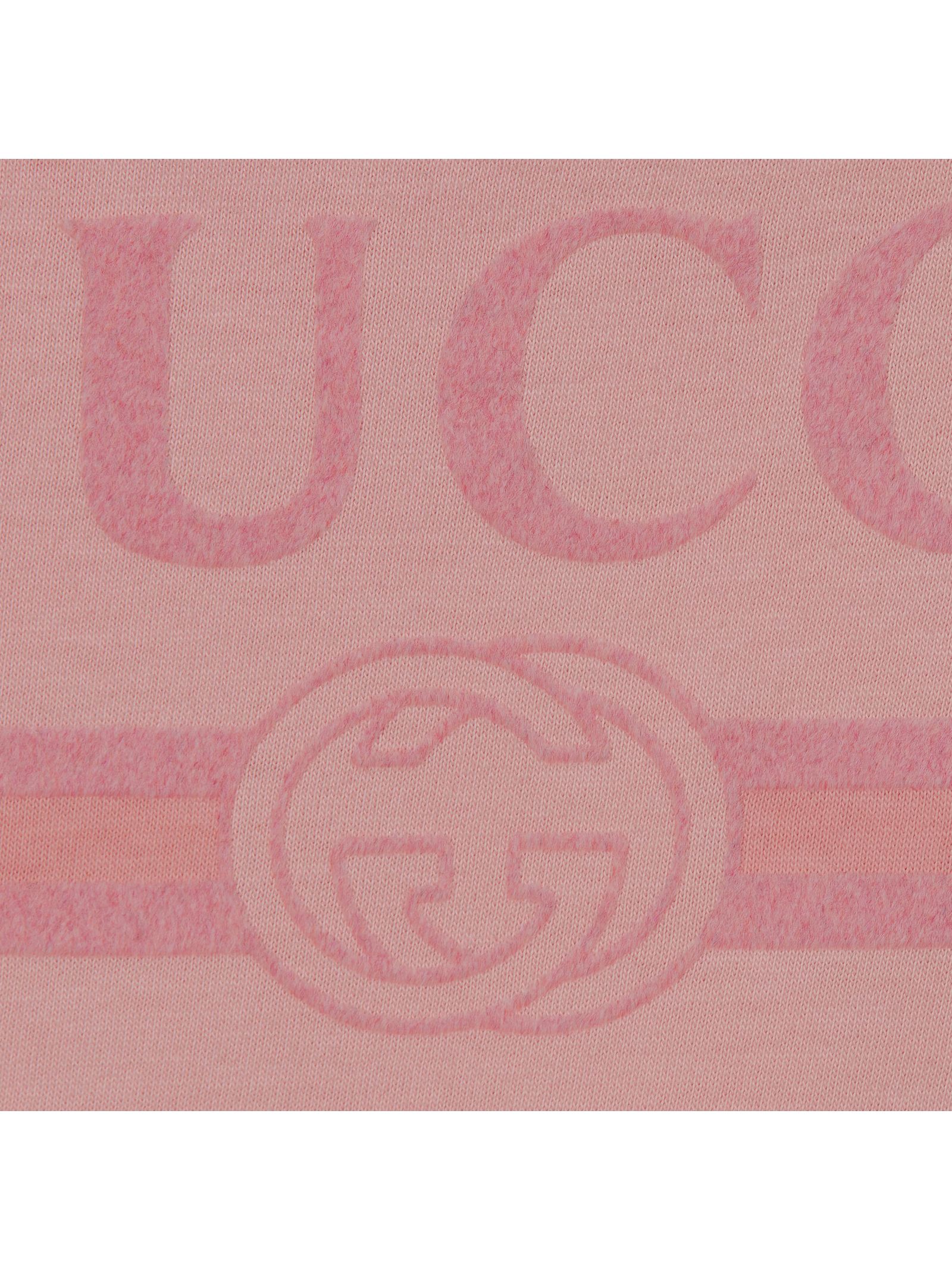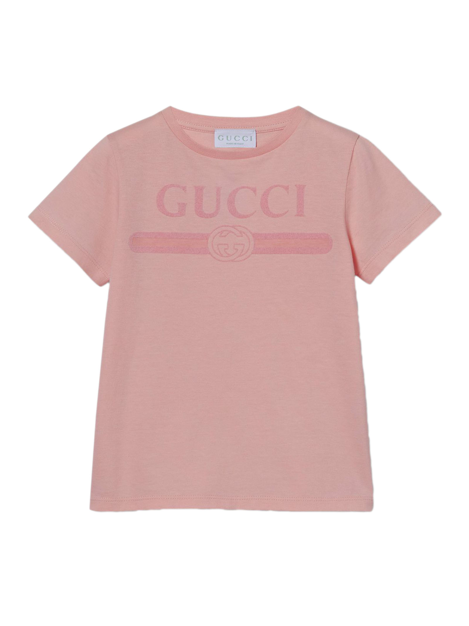 T-shirt in cotone rosa con stampa logo Gucci con Web e Incrocio GG, Girocollo, Maniche corte, Finiture a coste, Taglio classico