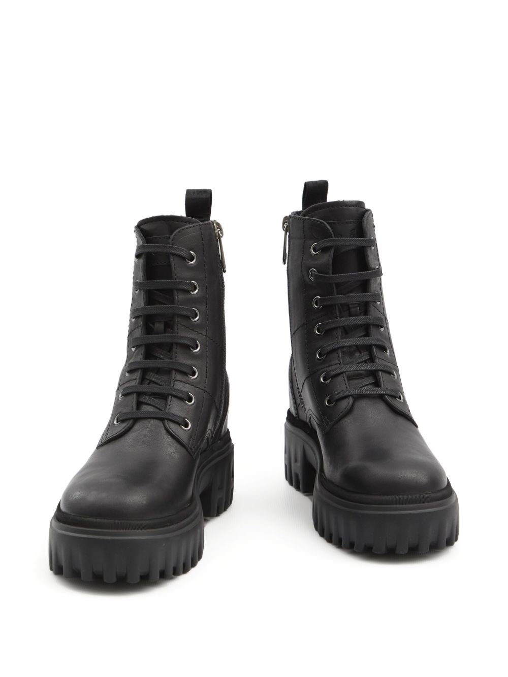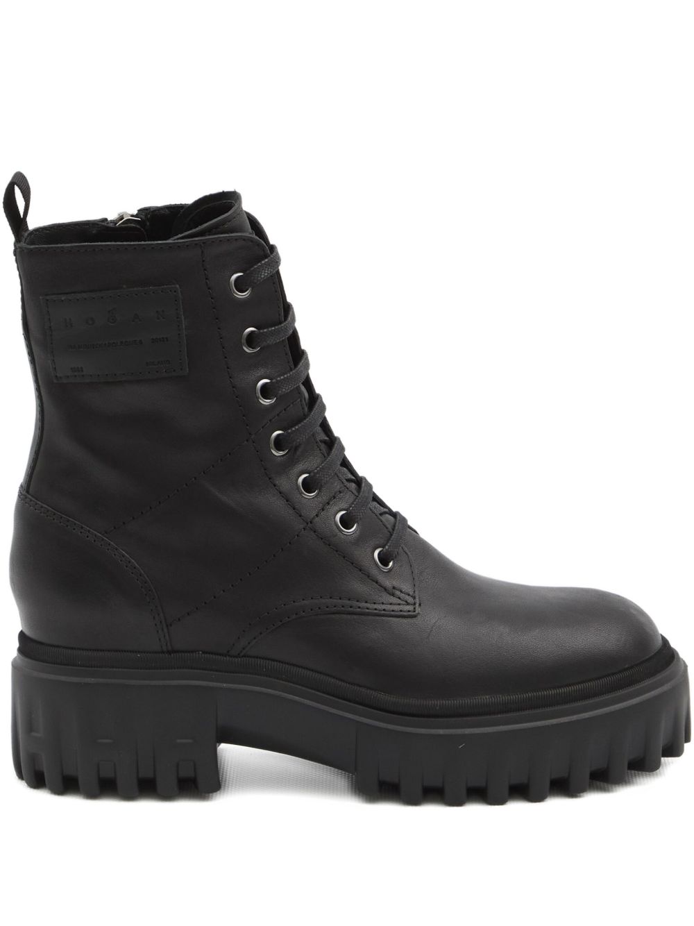 Anfibi Hogan H700 Nero, Tomaia in pelle, Patch Hogan con indirizzo del brand impresso, Cerniera sul lato interno, Fodera in pelle, Soletta in memory foam 8 mm, Suola in gomma, Altezza totale 7,6 cm circa