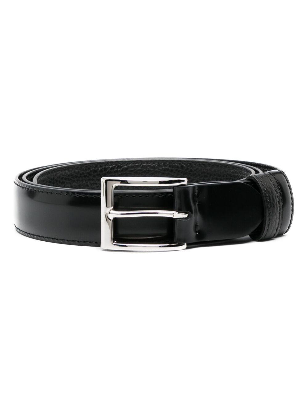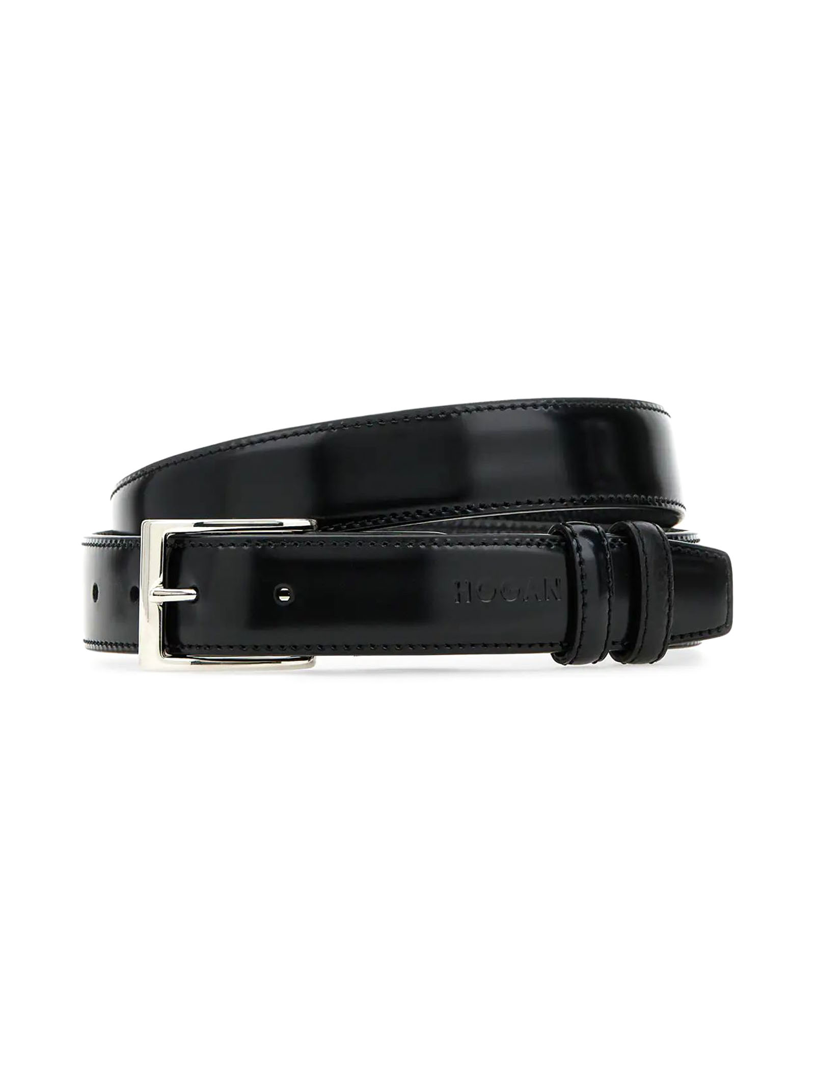 Cintura in pelle semilucida nera, Passante in pelle effetto martellato, Fibbia ad ardiglione in metallo, Logo Hogan impresso, Altezza 3 cm