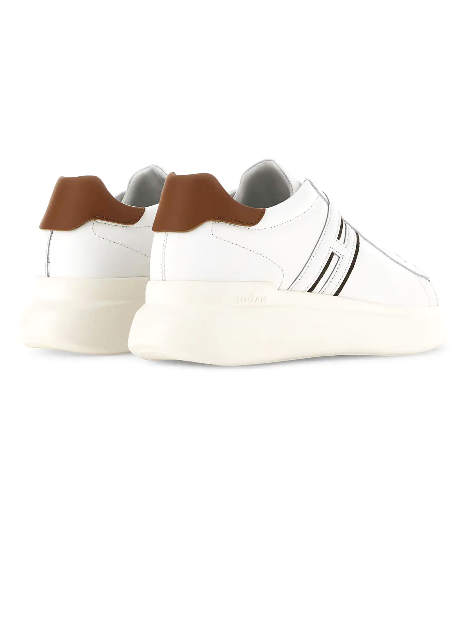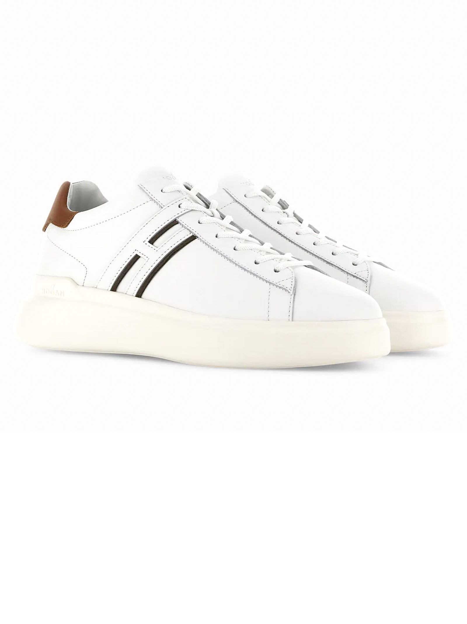 Hogan H580 BiancoTomaia in pelle lisciaDettagli in pelle scamosciataH lateraleFussbett in memory foam 8 mmSuola in gommaAltezza totale 4,5 cm