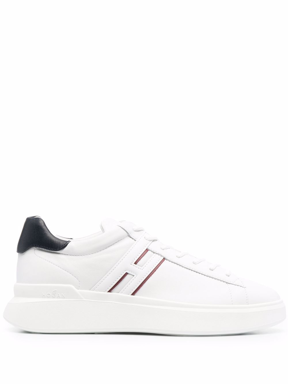 Hogan H580 bianco, Tomaia in nappa lucida, H laterale, Fussbett in memory foam, Suola in gomma
