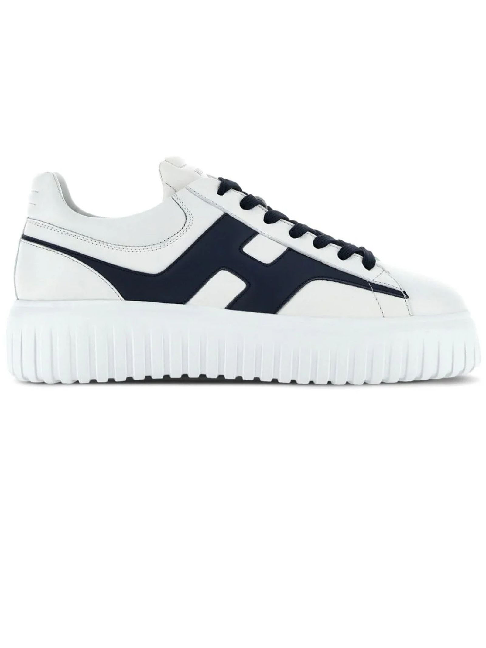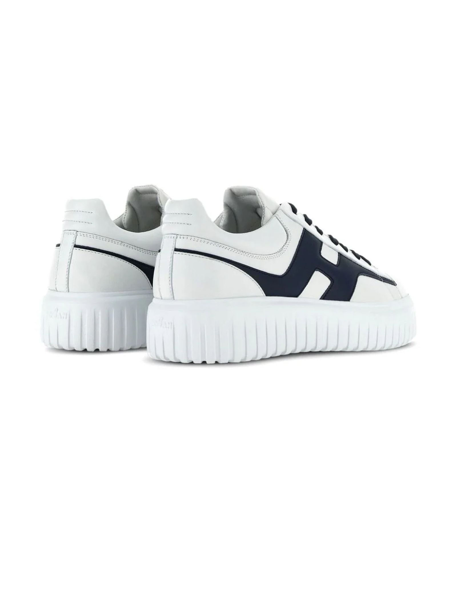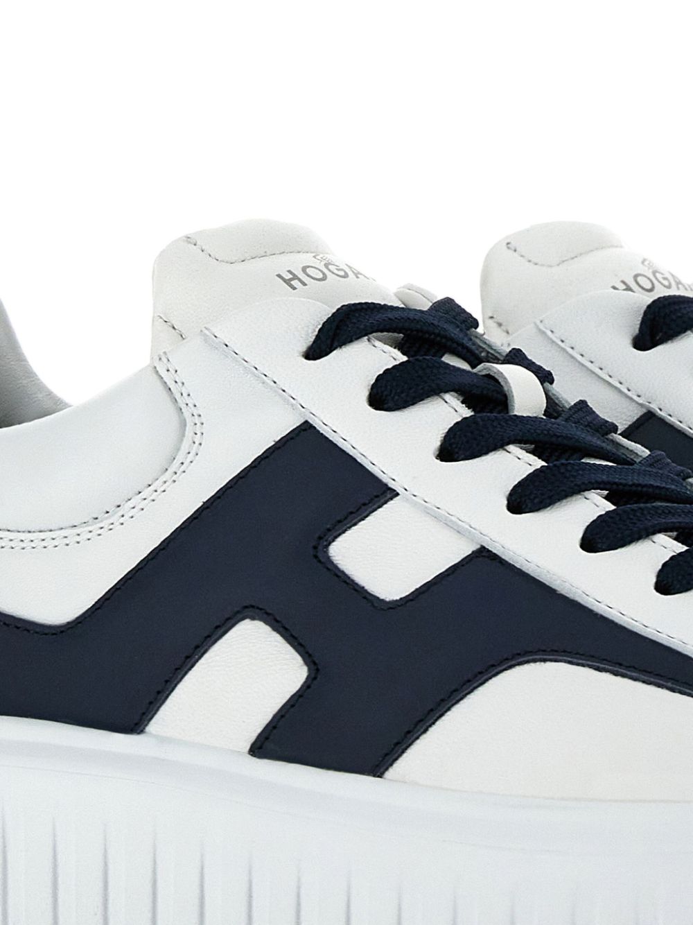 hogan h645 bianco pelle cuciture decorativa cuciture a contrasto logo ricamato laterale linguetta con logo stampato punta tonda chiusura frontale con lacci soletta con memory foam suola chunky in gomma