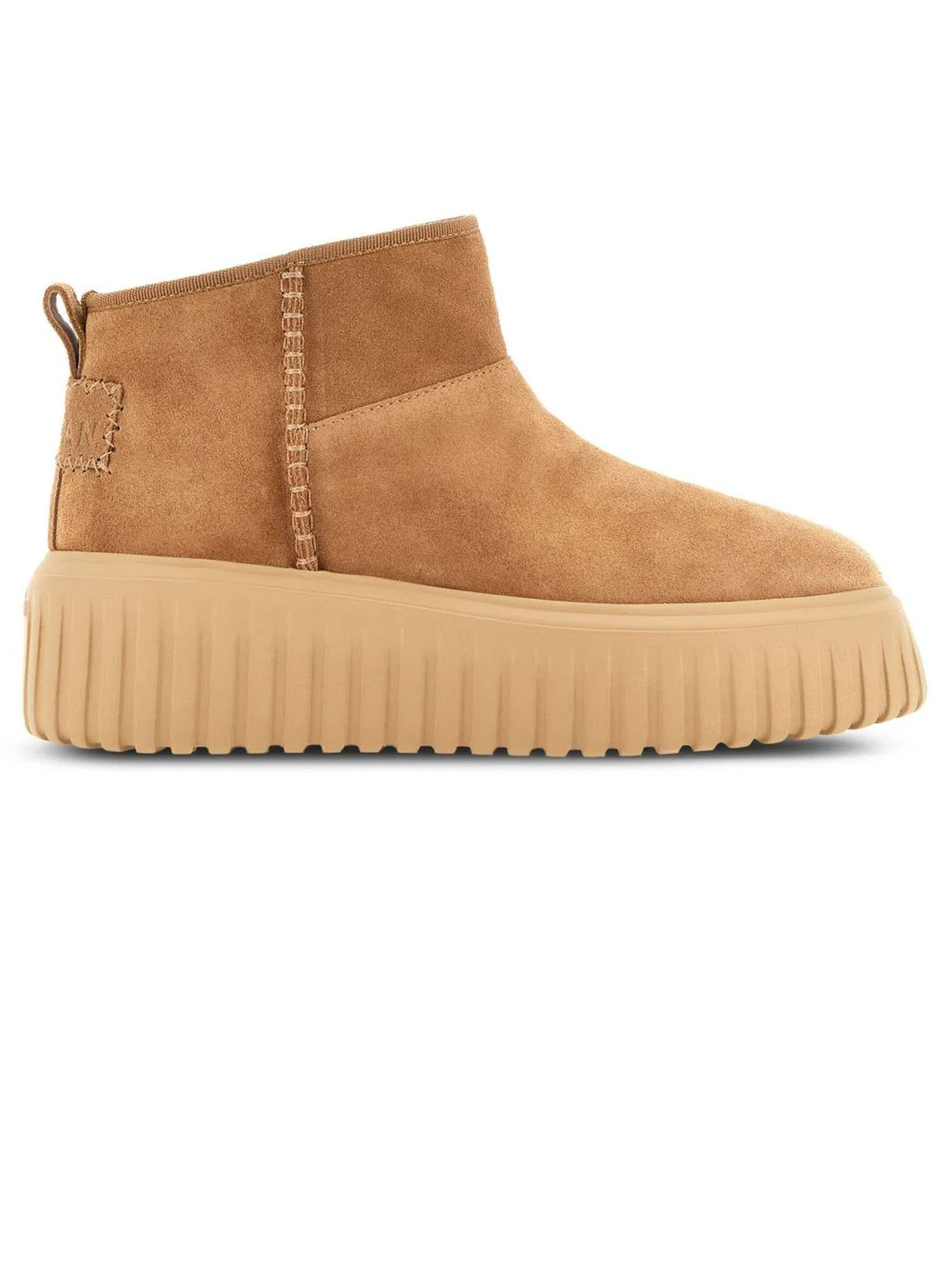 hogan h645 marronepelle scamosciata di vitellostampa con logo sul retrolinguetta sul tallonepunta tondadesign slip-onsoletta con logosuola in gomma antiscivolo