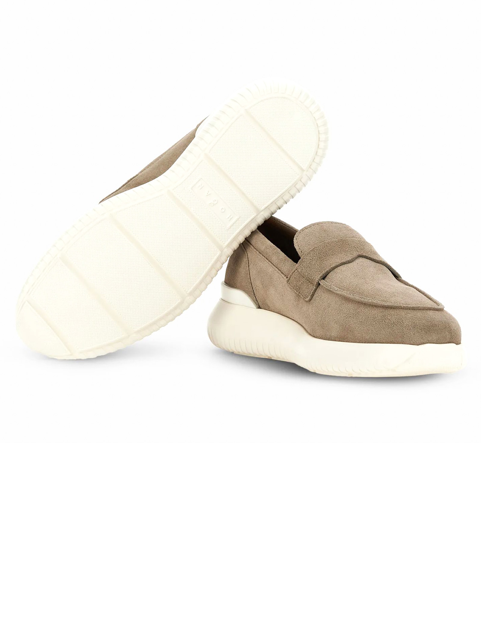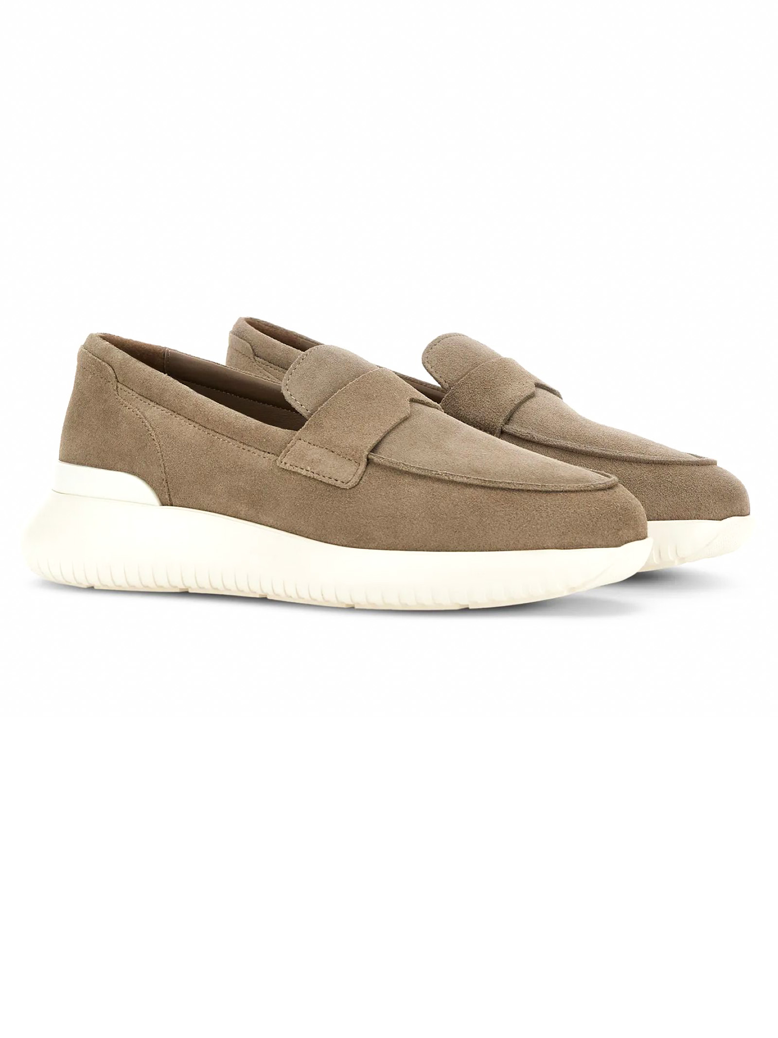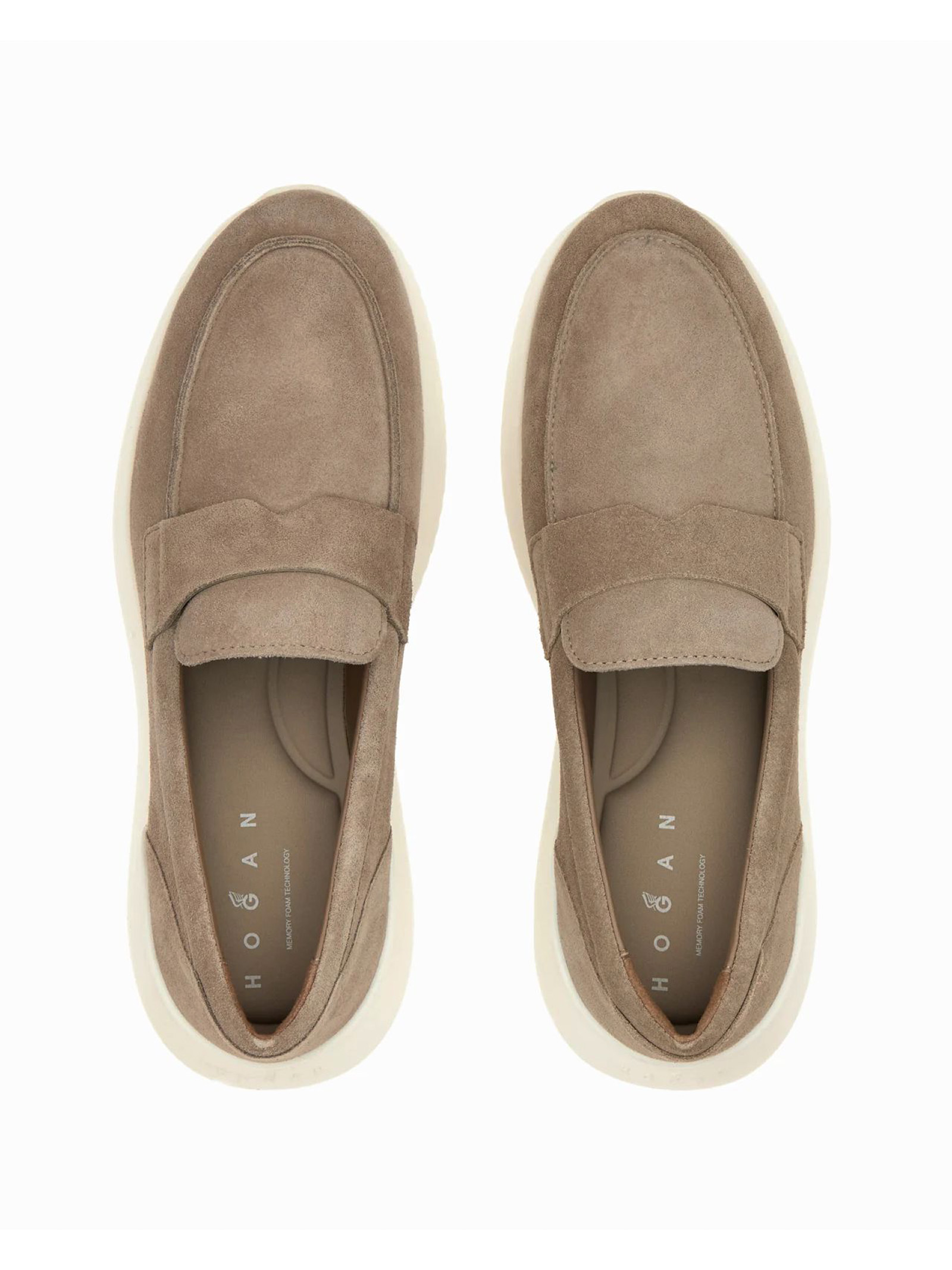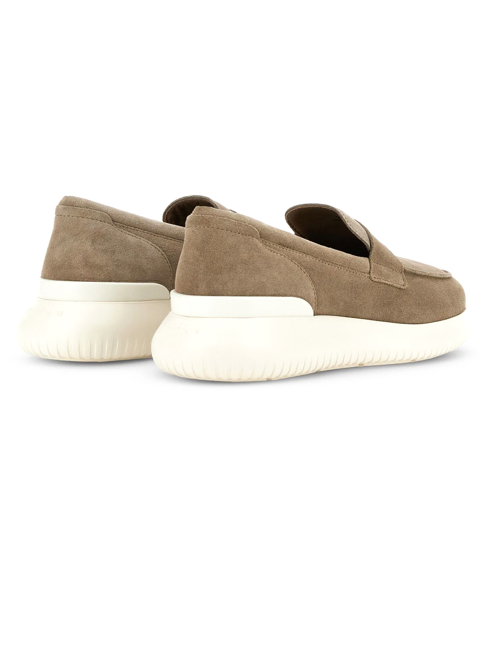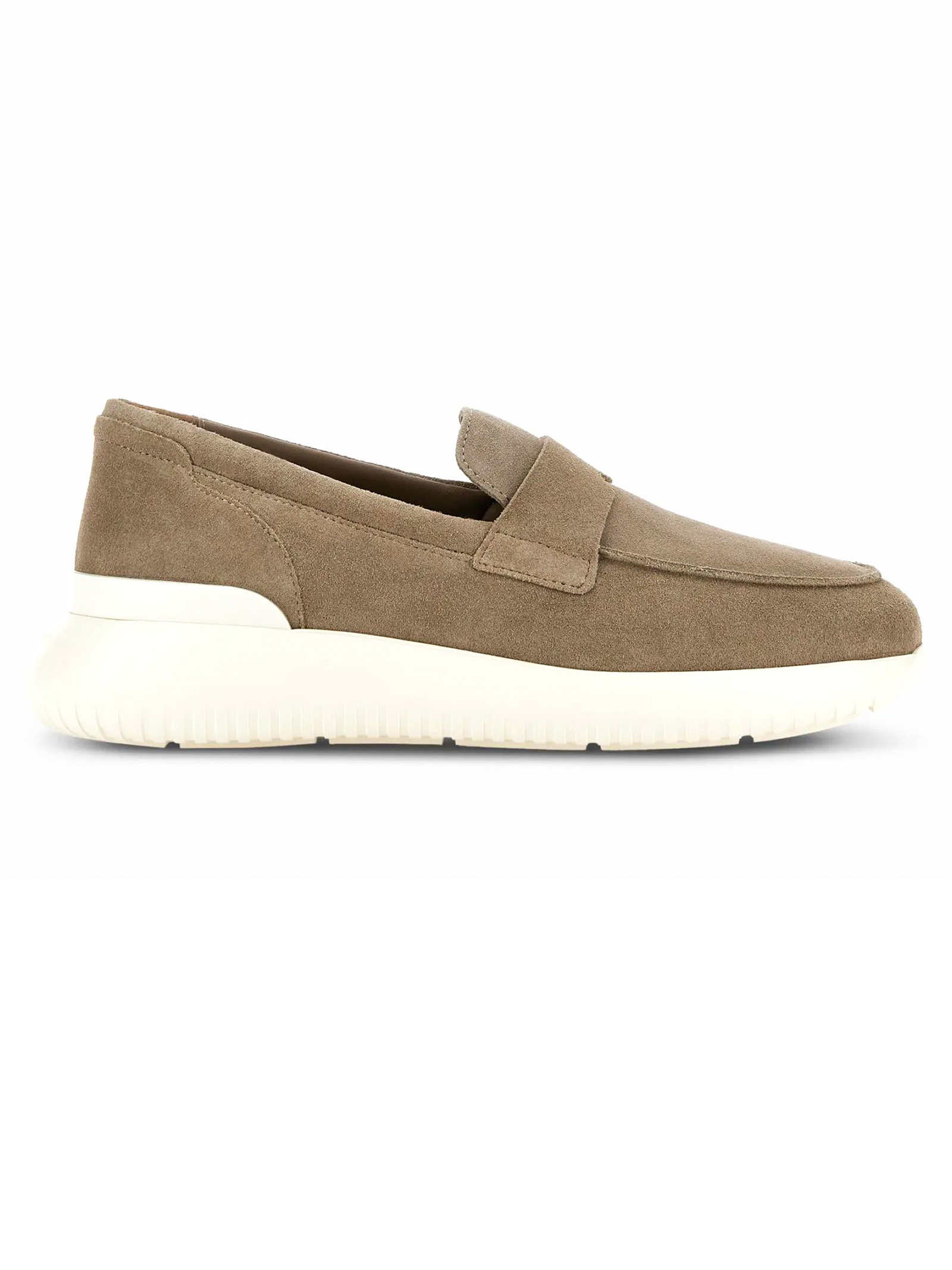 Mocassini Hogan Interactive³, tomaia in pelle scamosciata marrone, Decorato con delicate strisce orizzontali, Solette in memory foam da 8 mm, Suola XL EXTRALIGHT® EXTRABOUNCE, Altezza totale 5,3 cm