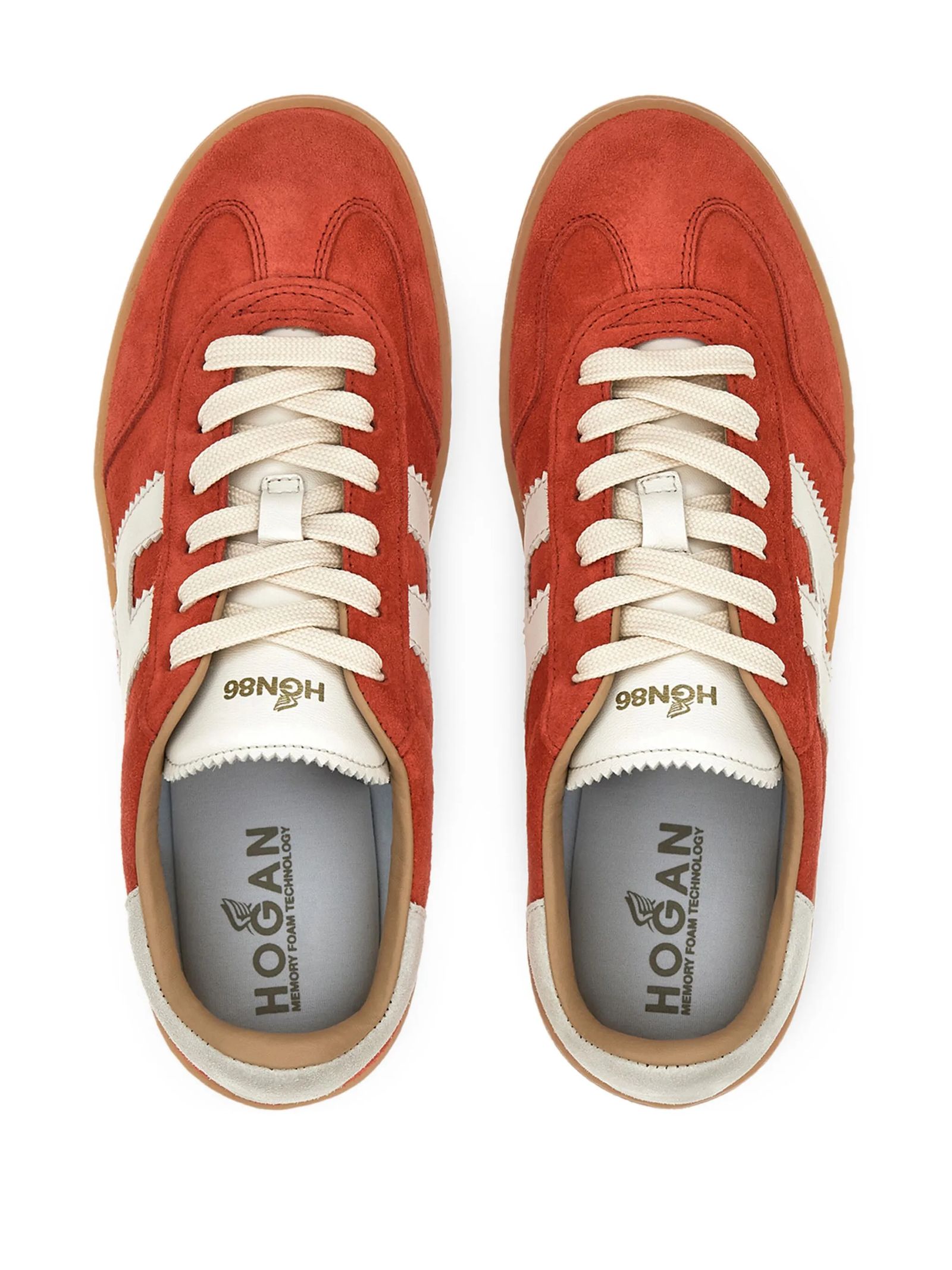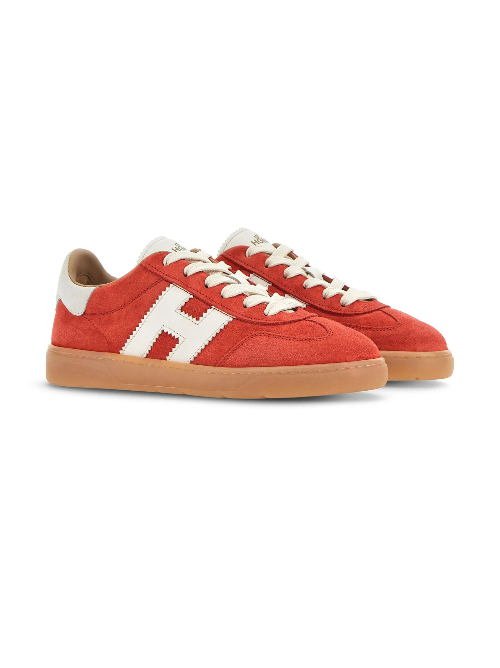 Sneakers Hogan Cool Rosso, tomaia in pelle liscia e scamosciata, H laterale in nappa, Soletta in memory foam 5 mm, Suola a cassetta in gomma (TPU), Altezza totale 3,2 cm