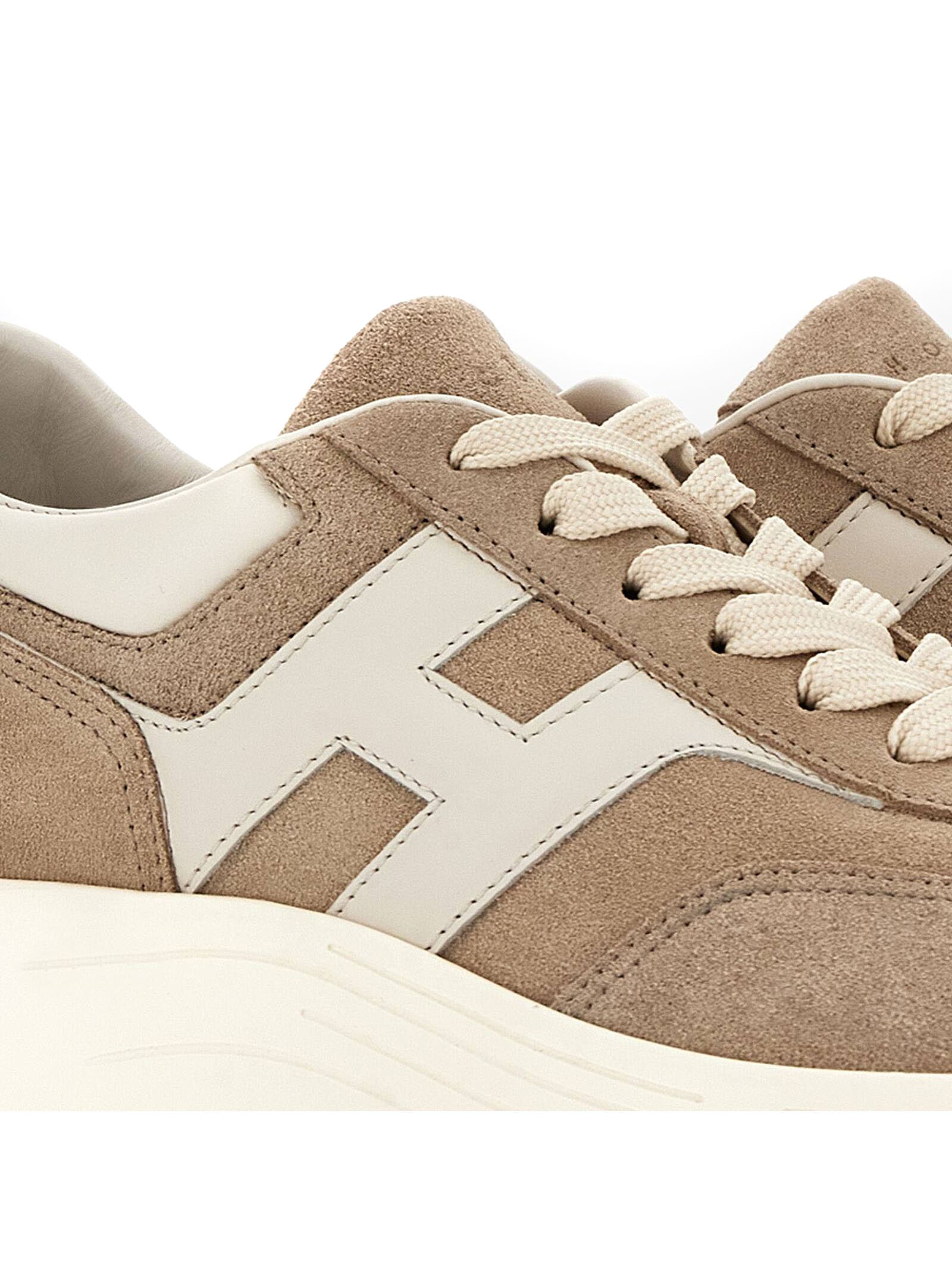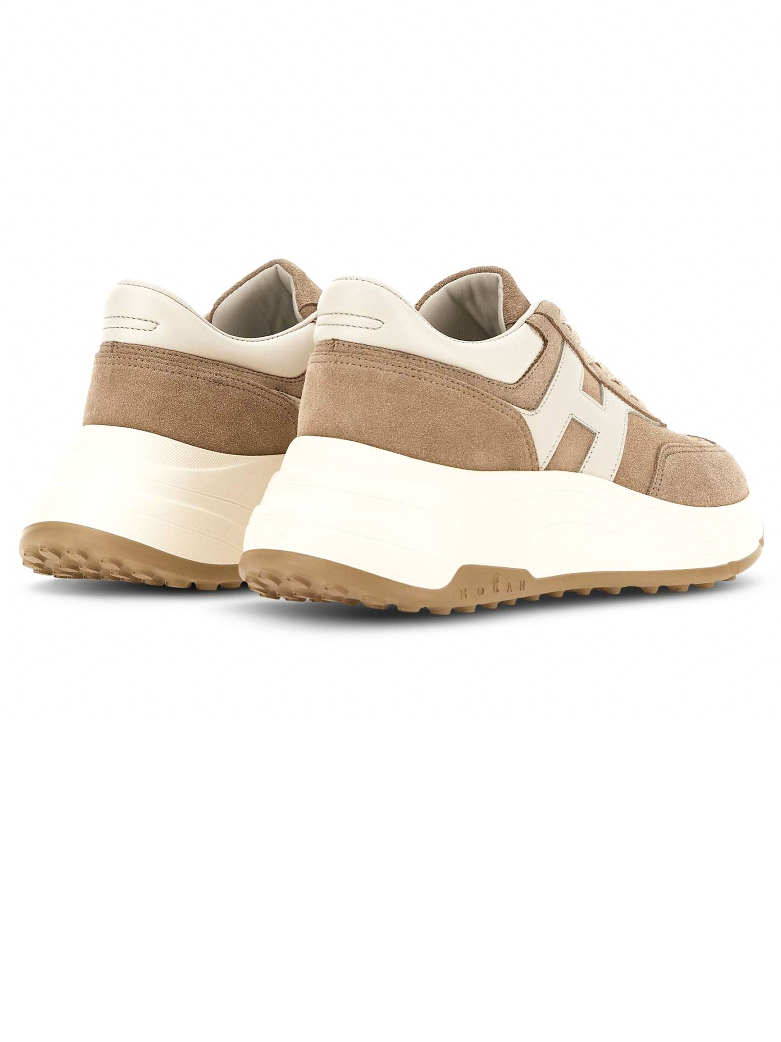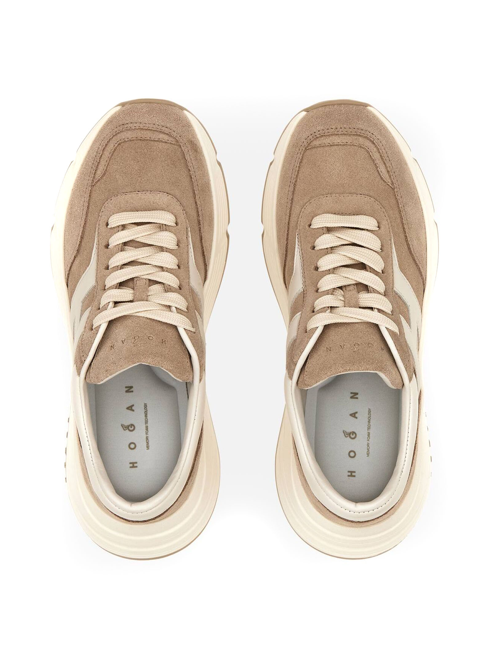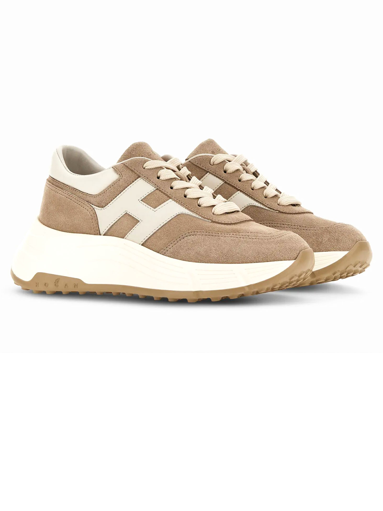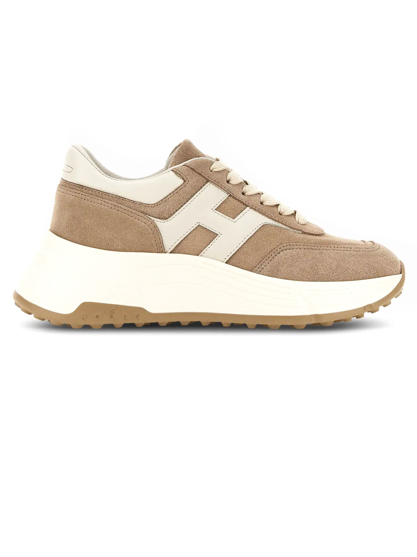Sneakers Hogan Hi-Fi Beige, Tomaia in pelle scamosciata, H laterale pelle liscia, Dettagli in nappa, Soletta in memory foam 8 mm, Suola in gomma, Altezza totale 6,5 cm