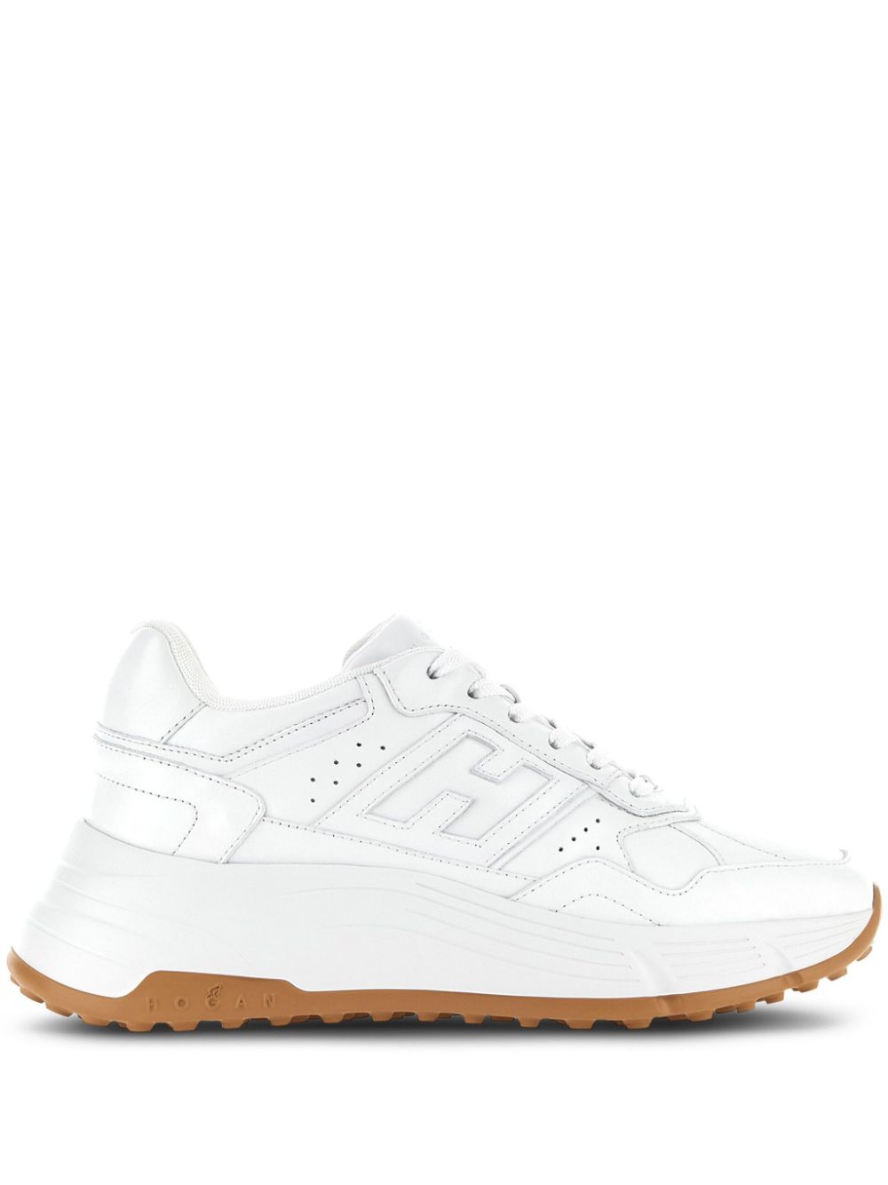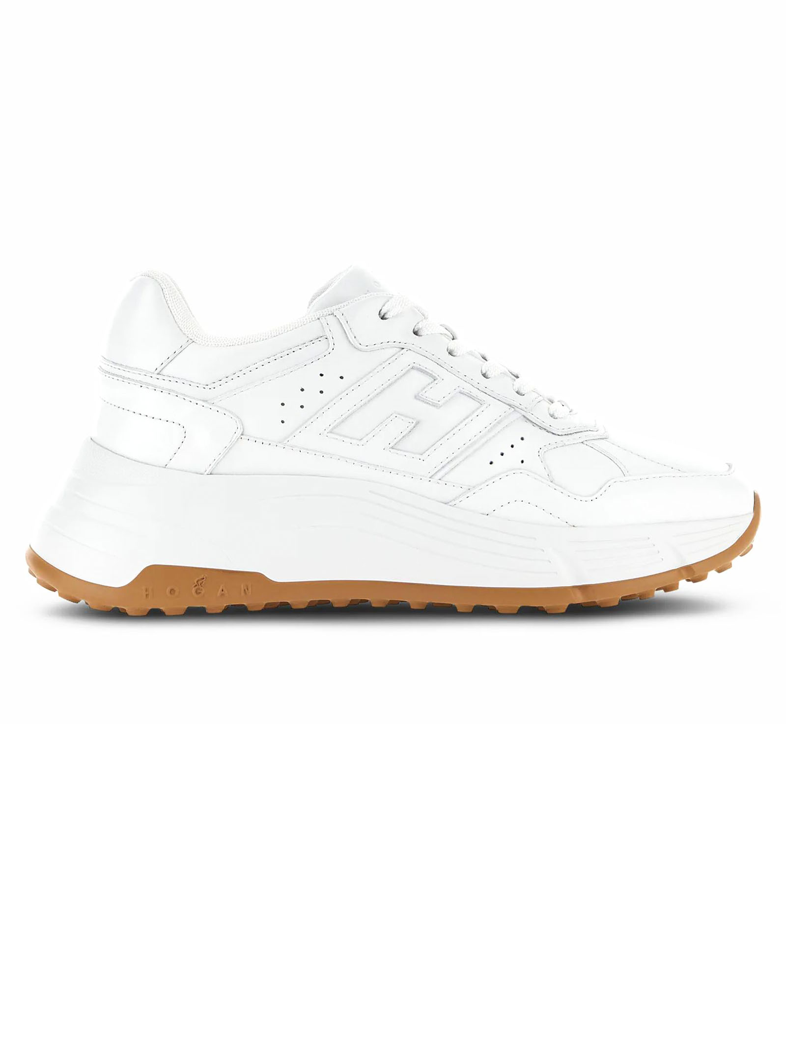 Sneakers Hogan Hi-Fi Bianco, Tomaia in pelle liscia, H laterale intagliata, Soletta in memory foam 8 mm, Suola in gomma, Altezza totale 6,5 cm