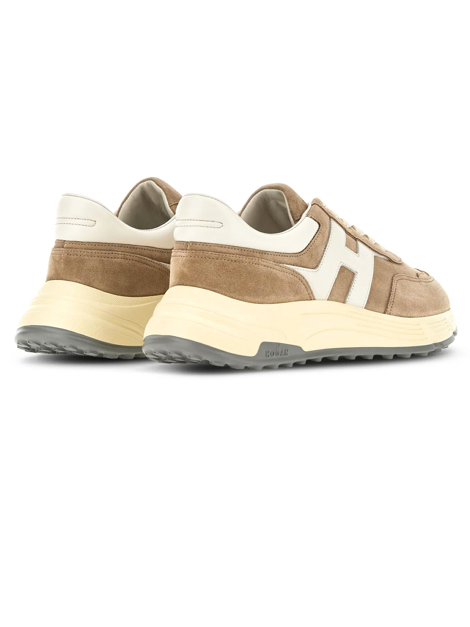 Sneakers Hogan Hyperlight Marrone, in pelle scamosciata, Dettagli in morbida nappa, H laterale obliqua in pelle liscia, Soletta in memory foam 8 mm, Suola in gomma, Altezza totale 4,5 cm