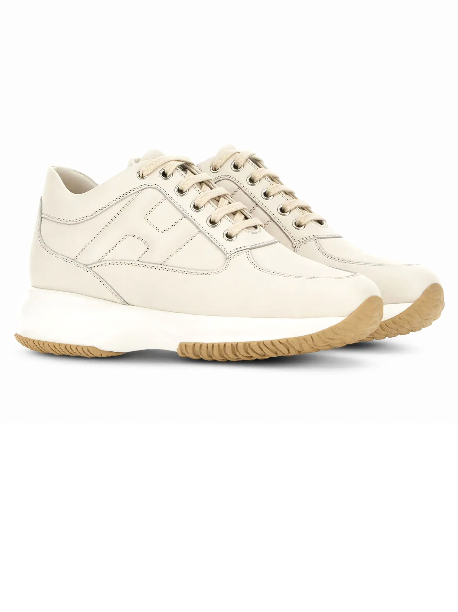 Sneakers Hogan Interactive Avorio, H laterale imbottita, Soletta removibile 1,2 cm, Suola in gomma, Altezza totale 5,7 cm