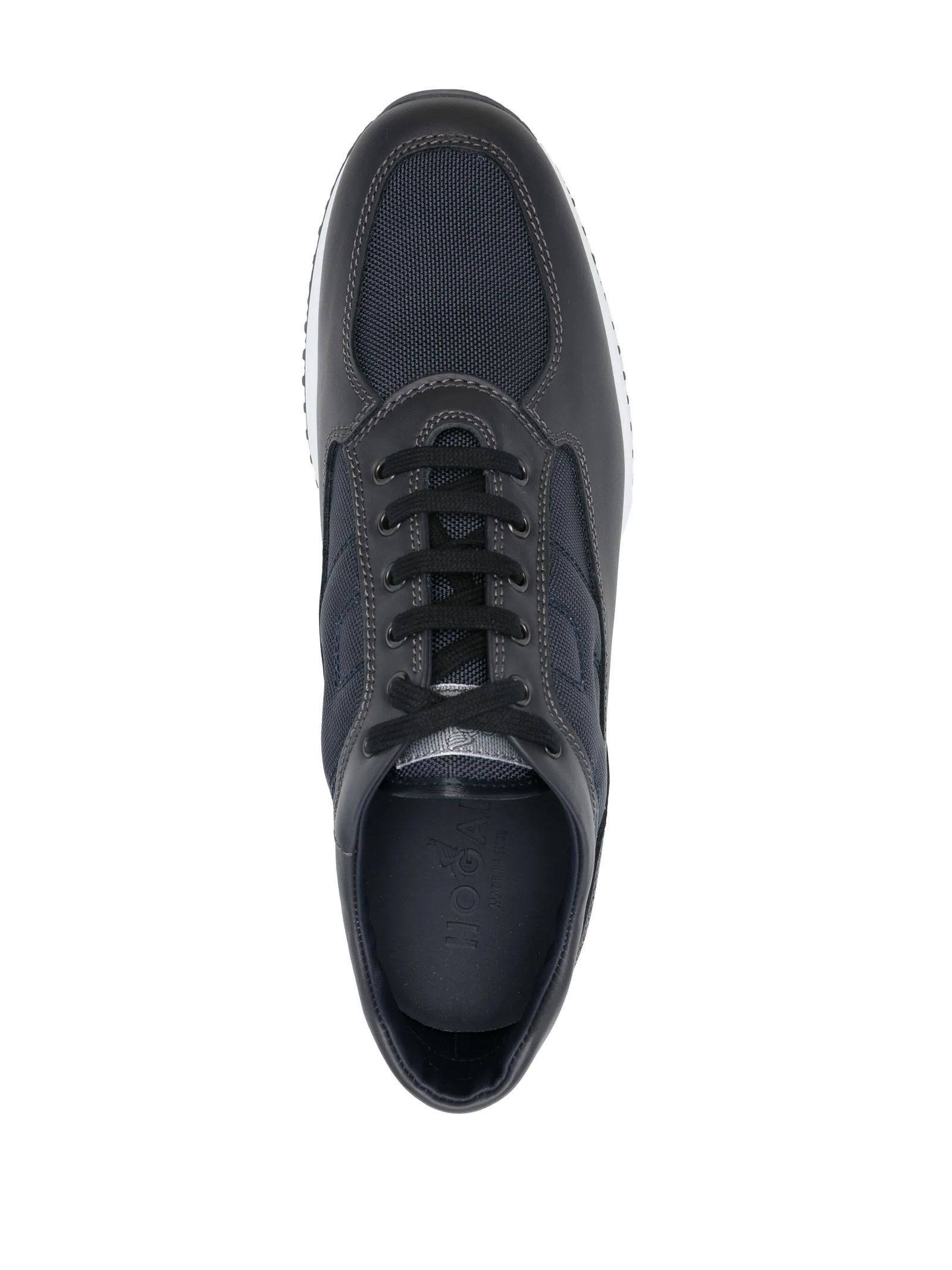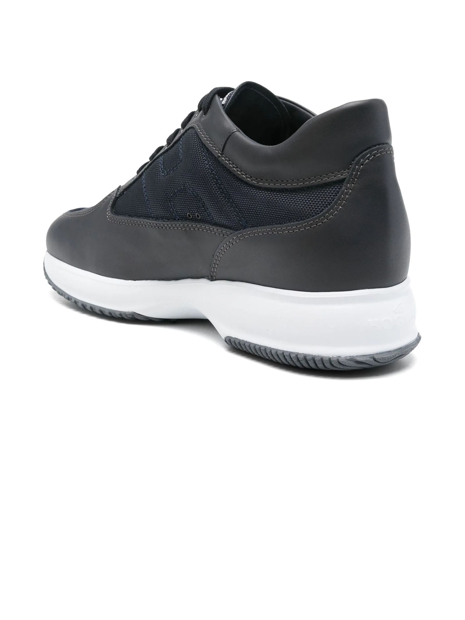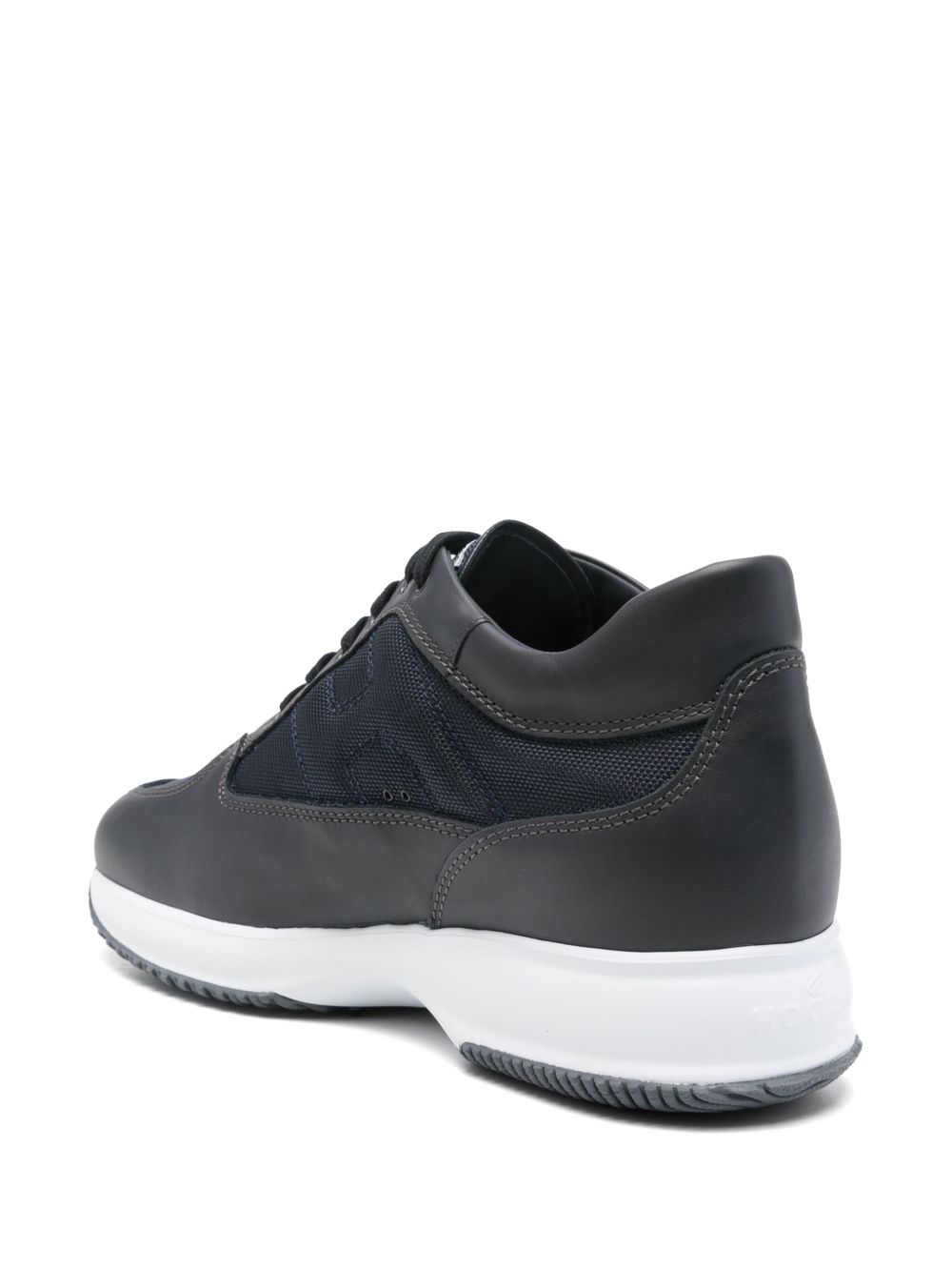 Sneakers Hogan Interactive Blu, Tomaia in pelle liscia, Inserti in tessuto tramato, Impunture a vista, H laterale in rilievo, Soletta estraibile rialzo 1,2 cm, Suola in gomma, Altezza totale 5,7 cm
