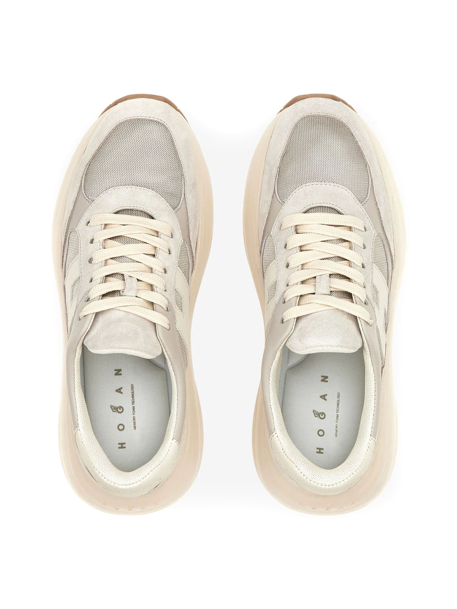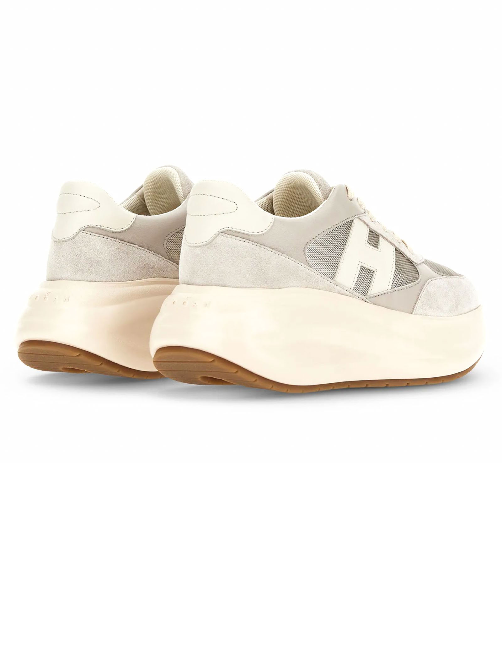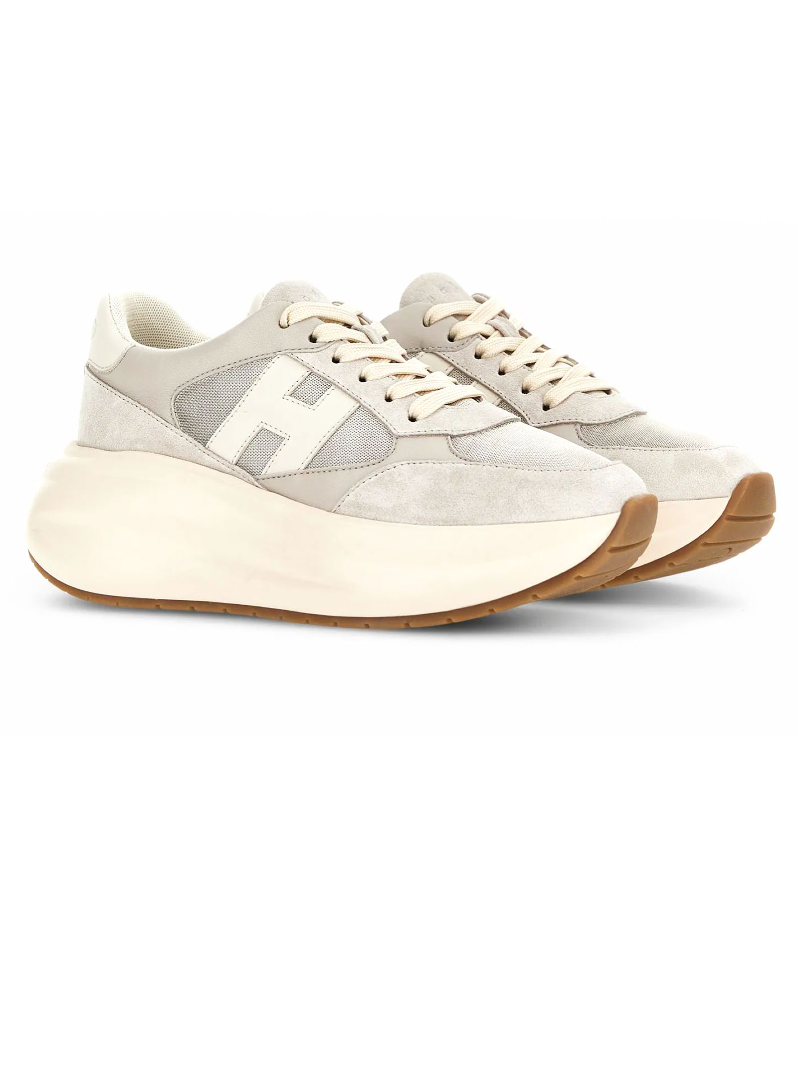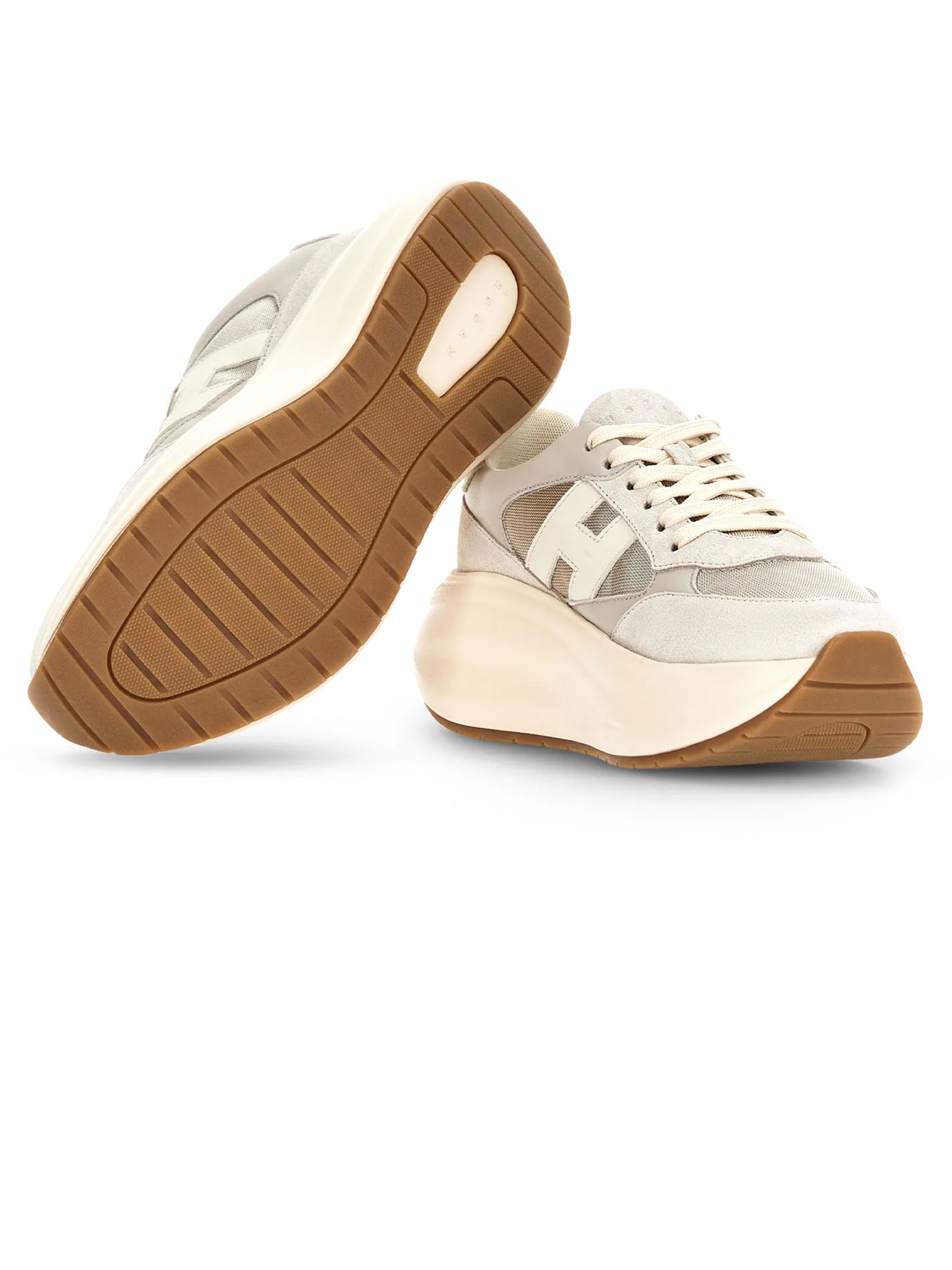Sneakers Hogan Maxi I Active Grigio, Tomaia in pelle scamosciata e tessuto tecnico, Inserti in pelle liscia, H laterale e dettagli in nappa, Logo Hogan impresso sulla linguetta, Soletta in memory foam 5 mm, Suola in gomma extralight, Altezza totale 6,5 cm