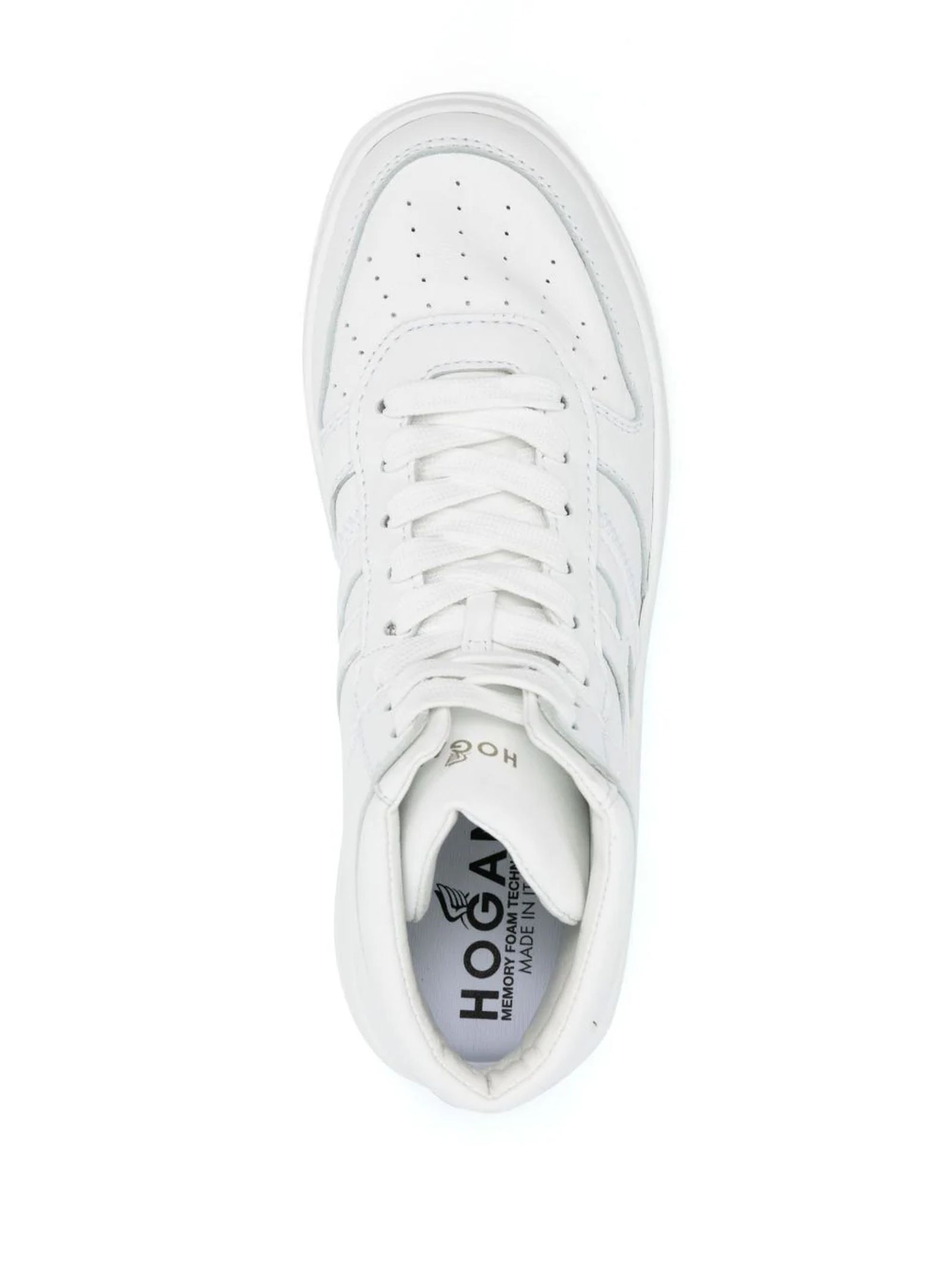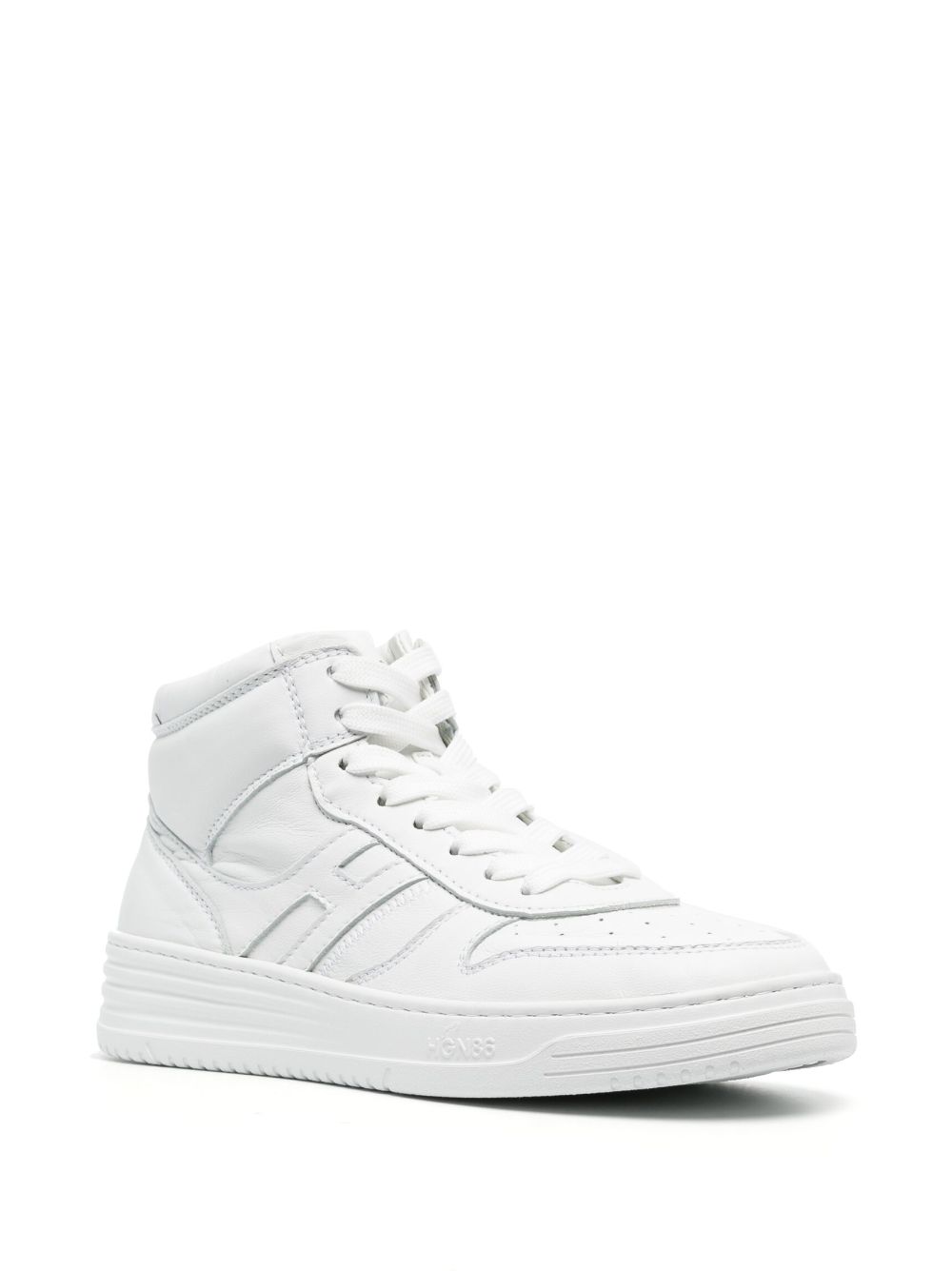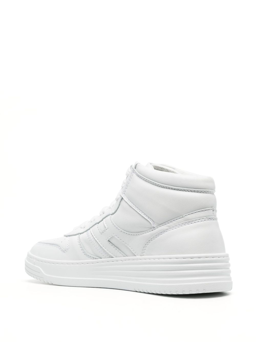 sneakers in pelle biancopelle di vitellodettaglio della toppasottopiede in pelle logatopunta rotondachiusura frontale con laccisuola piatta in gomma
