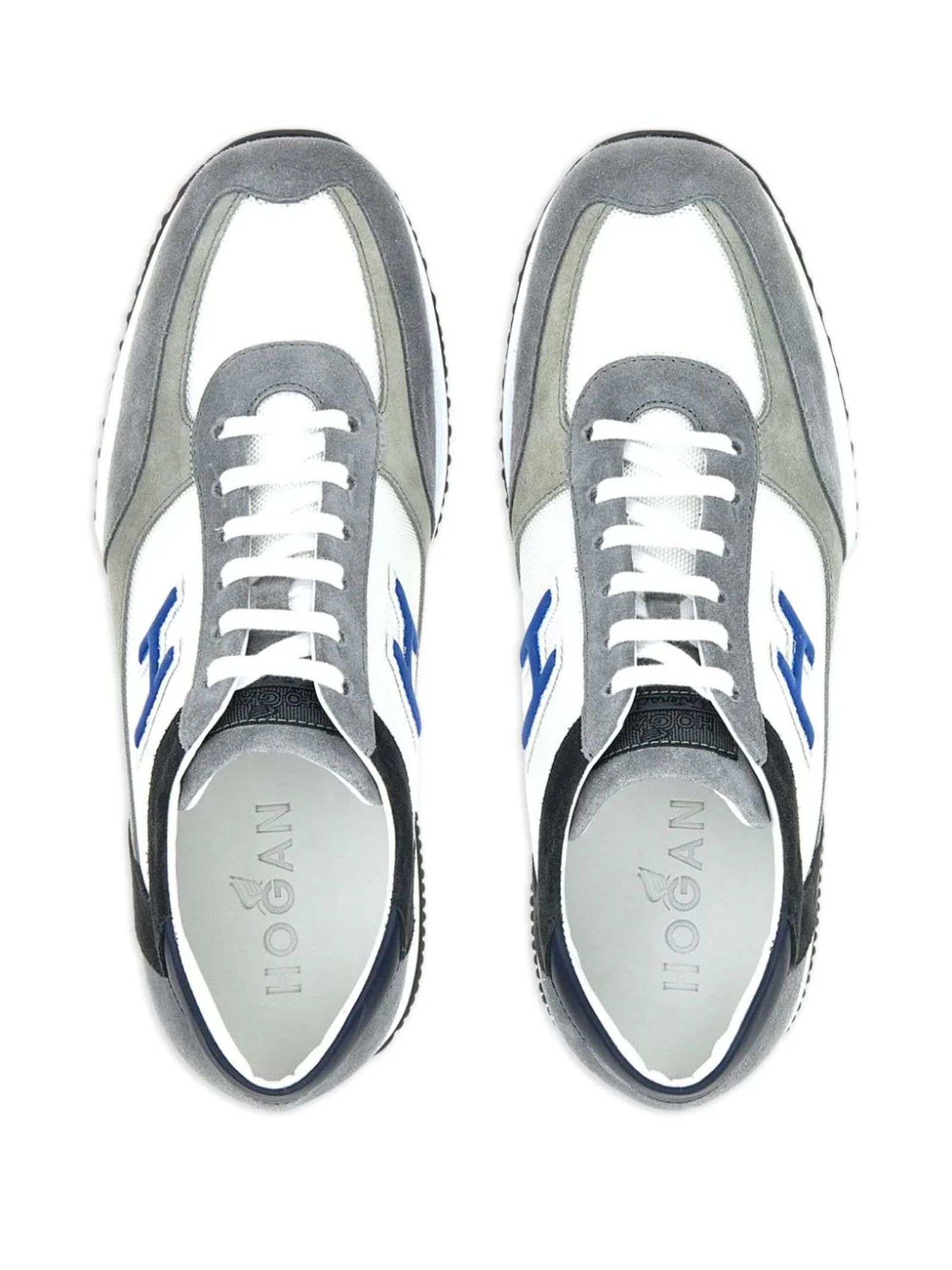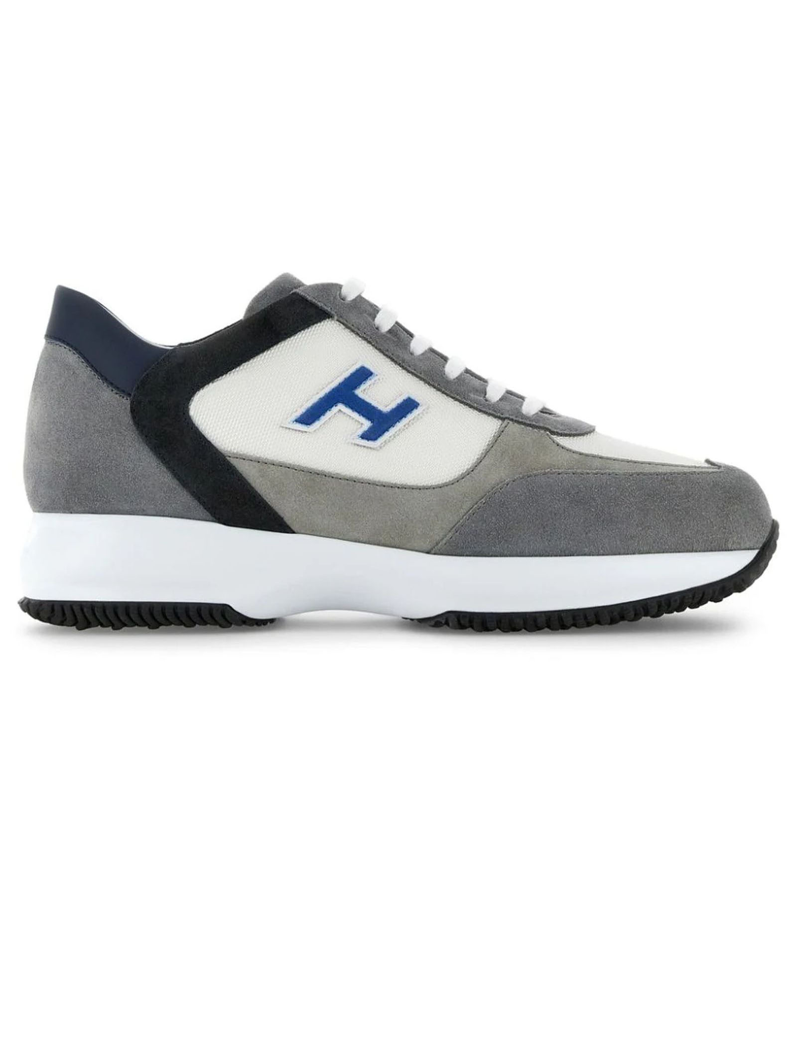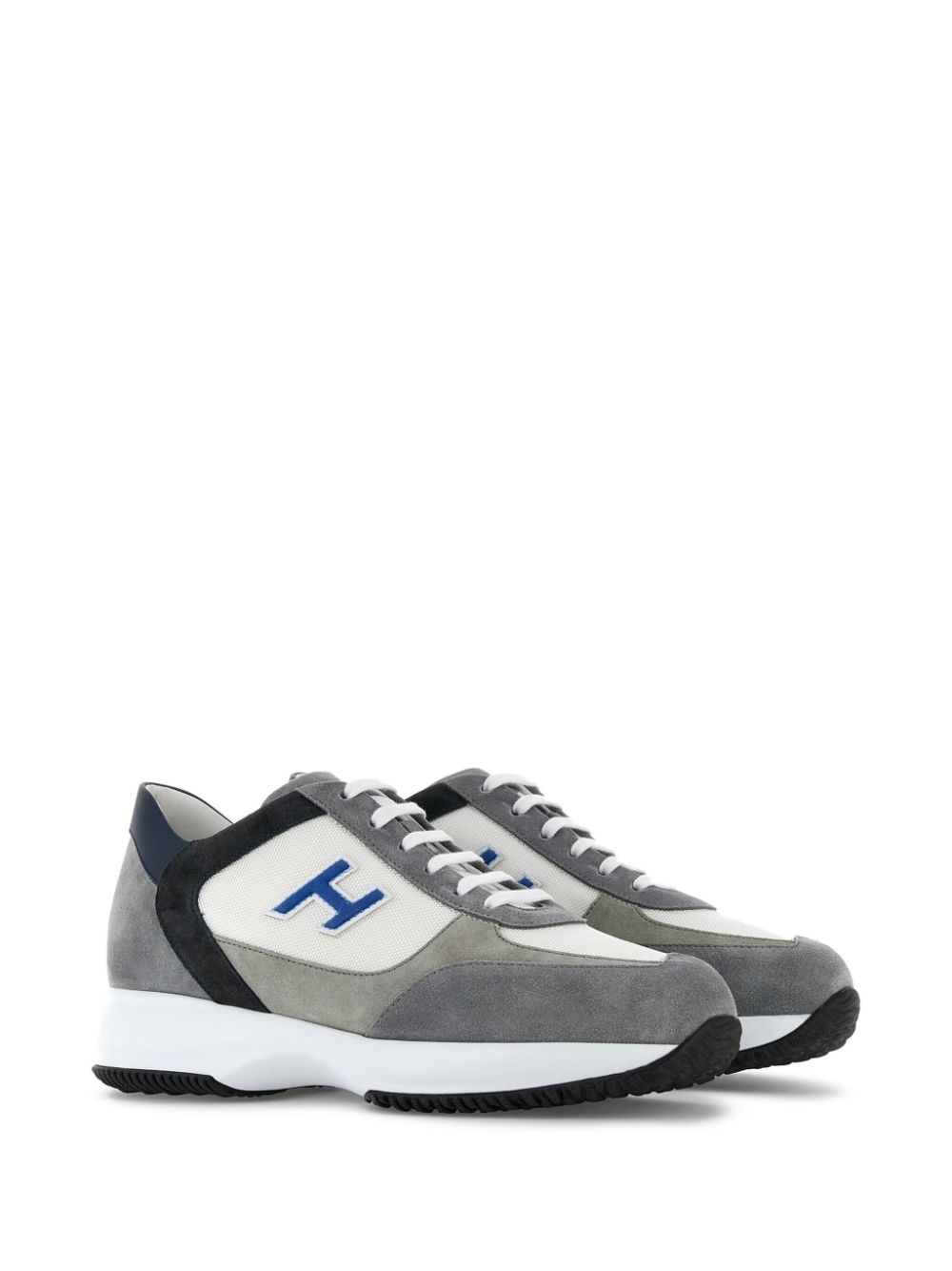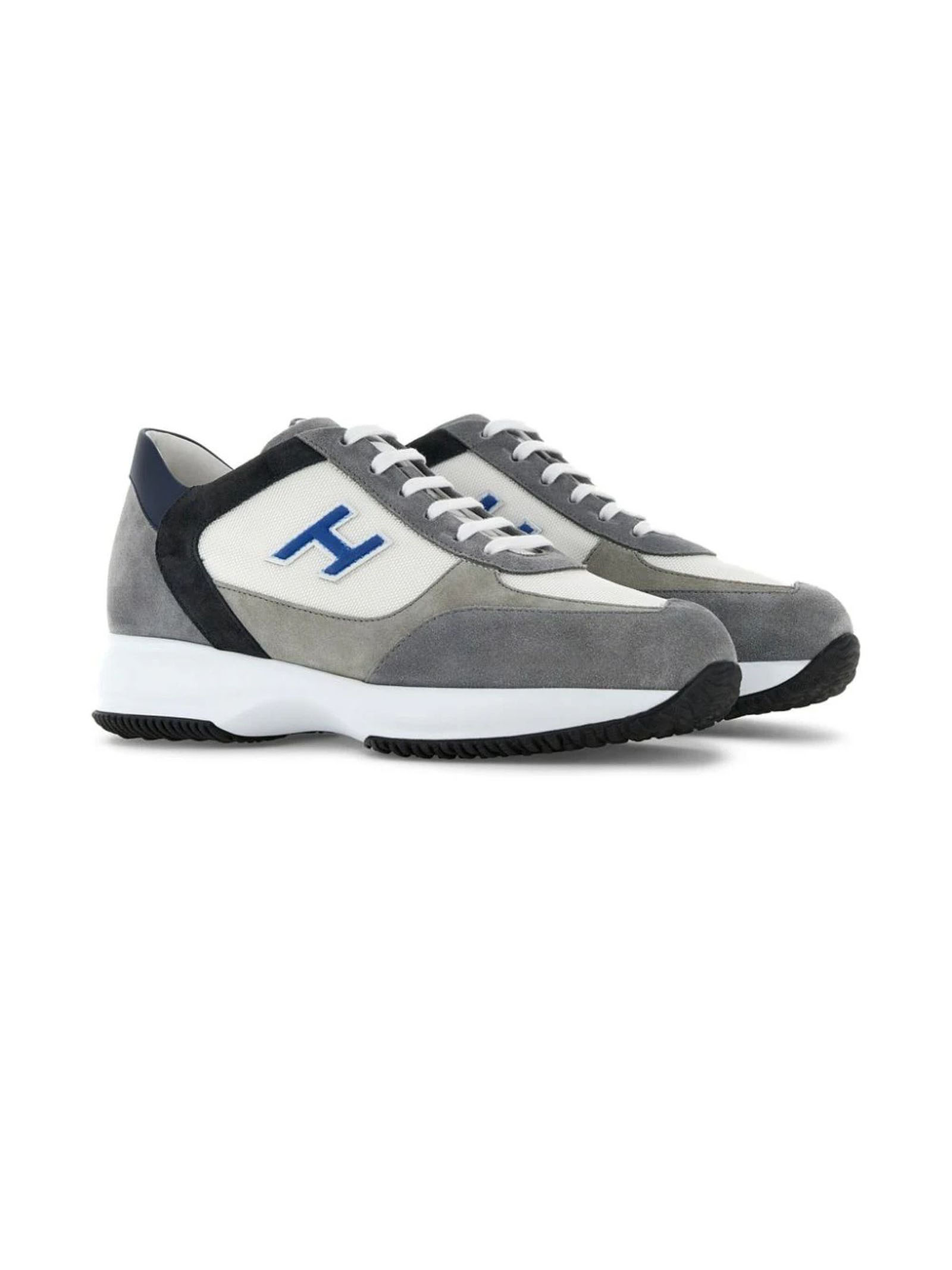 sneakers in pelle grigiopelle scamosciata di vitello/nabukdesign con pannelli a blocchi di coloretoppa con logo sul latotoppa con logo sulla linguettalogo sulla suolachiusura frontale con laccipunta rotondasoletta marchiatasuola spessa in gomma