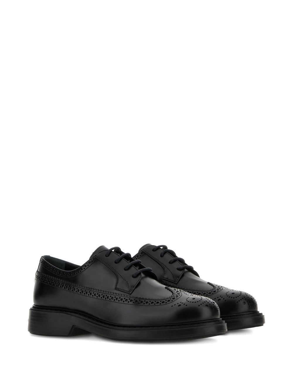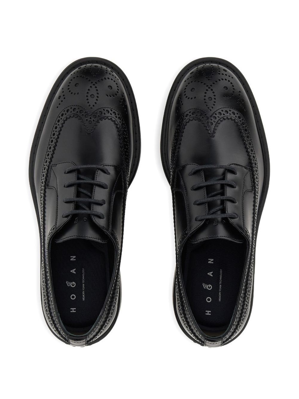 Stringate Hogan H704 Nero, tomaia in pelle liscia, Finitura spazzolata, Soletta in memory foam 6 mm, Guardolo in cuoio, Suola in EVA, Altezza totale 5 cm