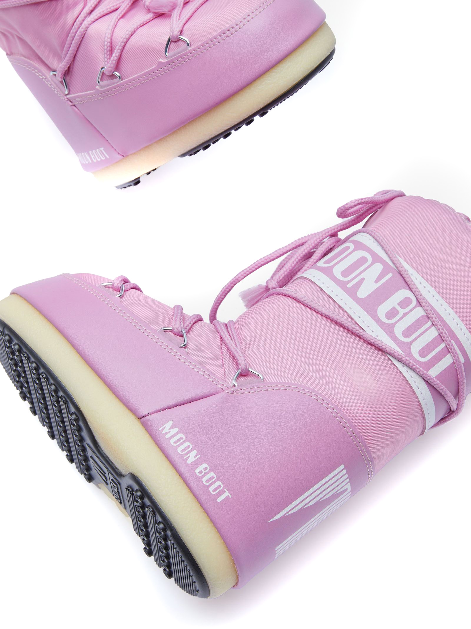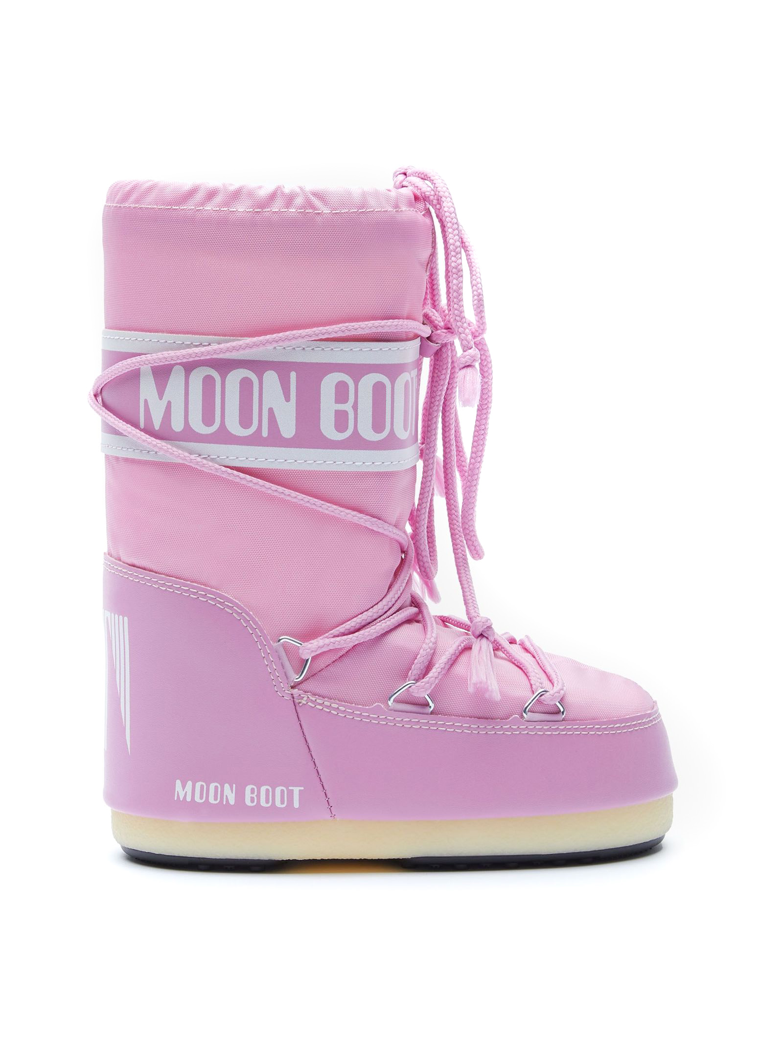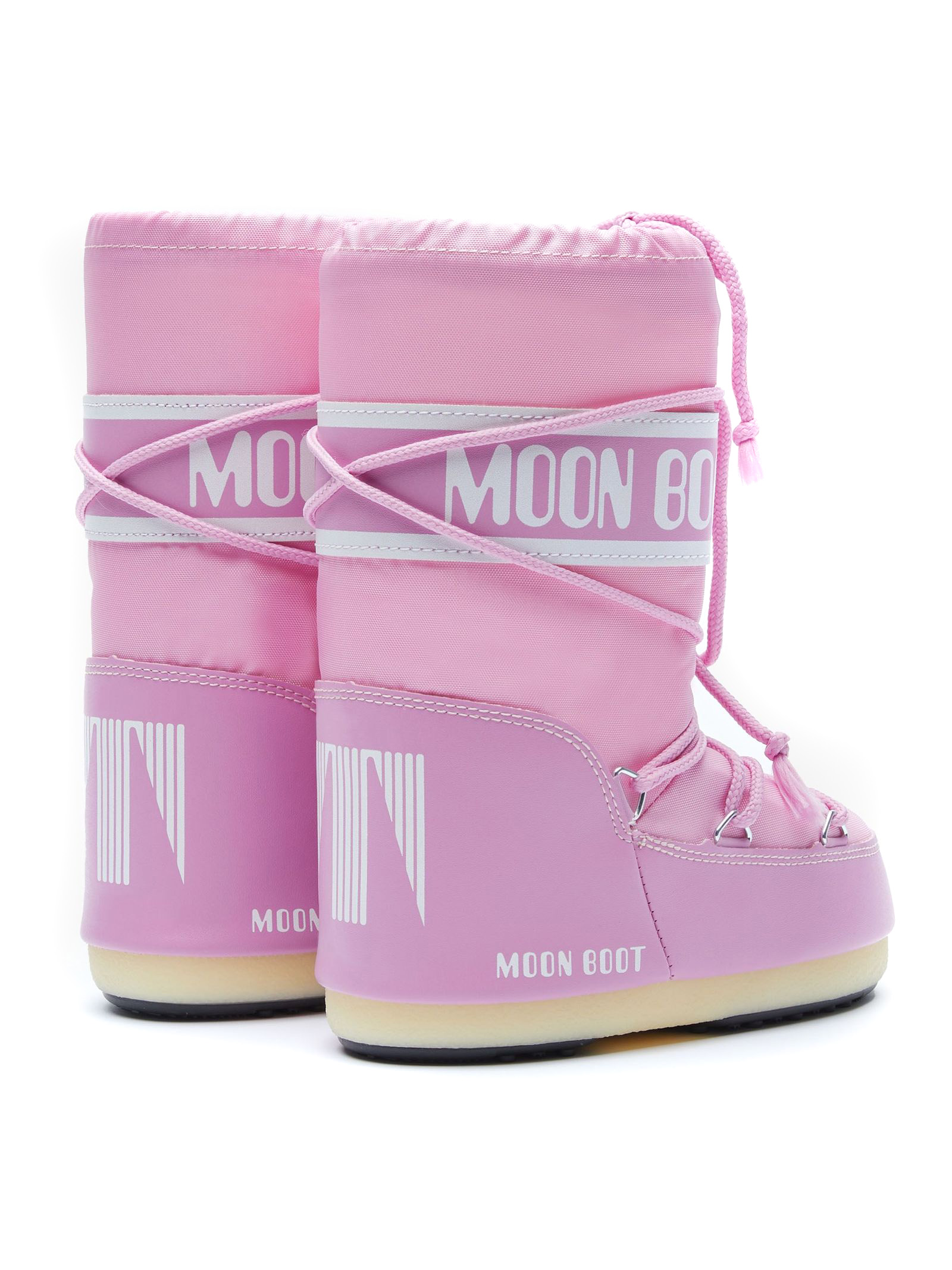 Icon Junior Rosa in Nylon, Design genderless, Ambidestro, 100% idrorepellente, Fascia con logo, Tallone e finiture in PVC, Occhielli in metallo color argento, Decorazione con lacci tubolari a incrocio (da non usare per regolare la vestibilità del modello), Coulisse regolabile, Intersuola in gomma termoplastica (TR), Battistrada in gomma antiscivolo, Multitaglia, Modello slip-on