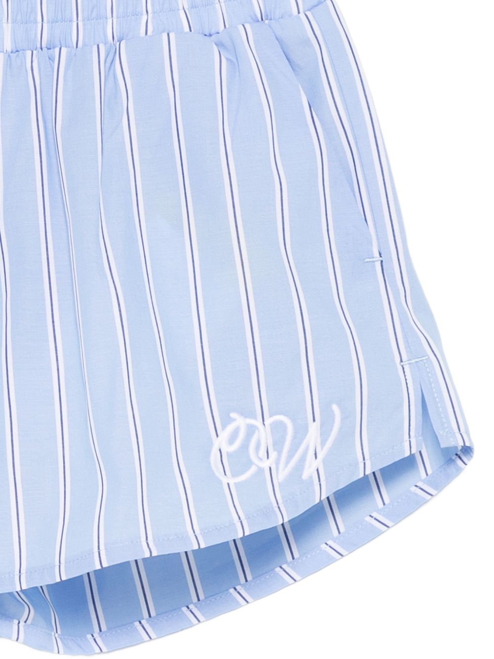 ricamo con logo con spacchi laterali elasticizzati in vita e motivo a righe azzurre
