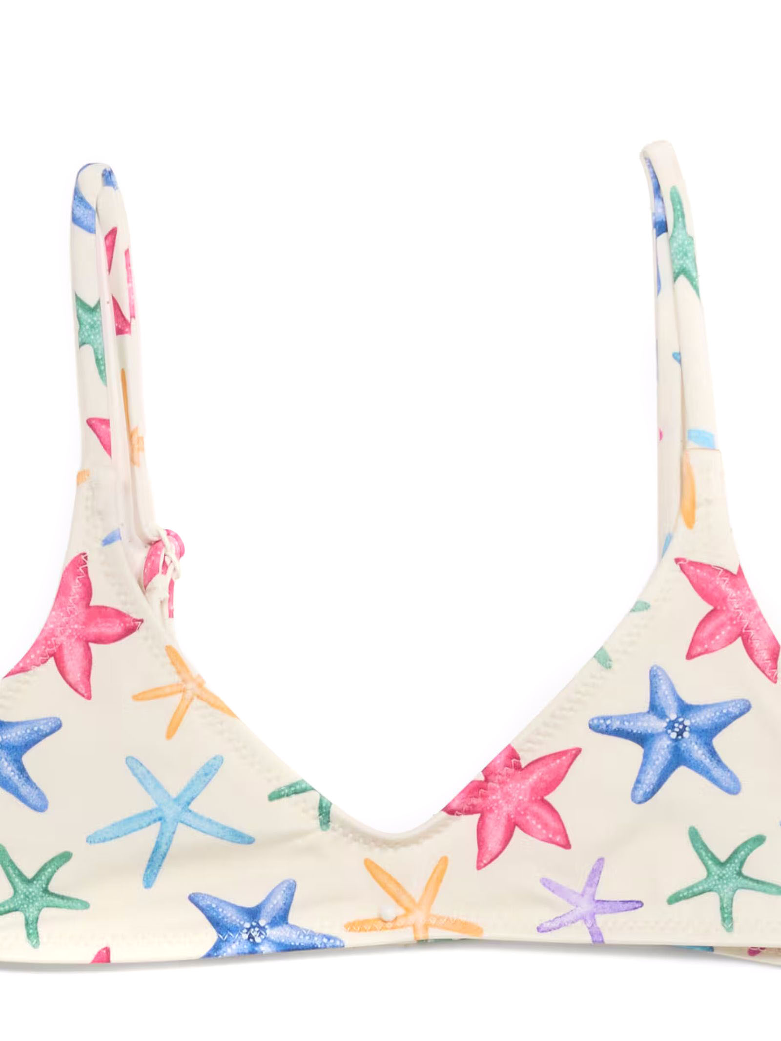 Bikini Paloma in nylon elasticizzato beige con fantasia Stelle Marine multicolor all-over, top a brelette con spalline regolabili e slip classica con laccetti laterali