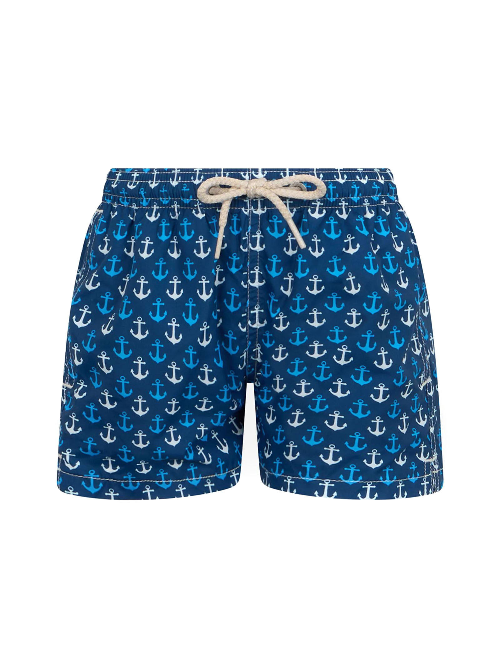 Costume da bagno in tessuto leggero Jean Lighting con stampa ancora, Asciugatura rapida, Stampa ancora, Sfondo blu navy, Comoda vita elasticizzata, Cordoncino regolabile con terminalini marchiati, Fodera interna in rete, Tasche laterali con cucitura alla