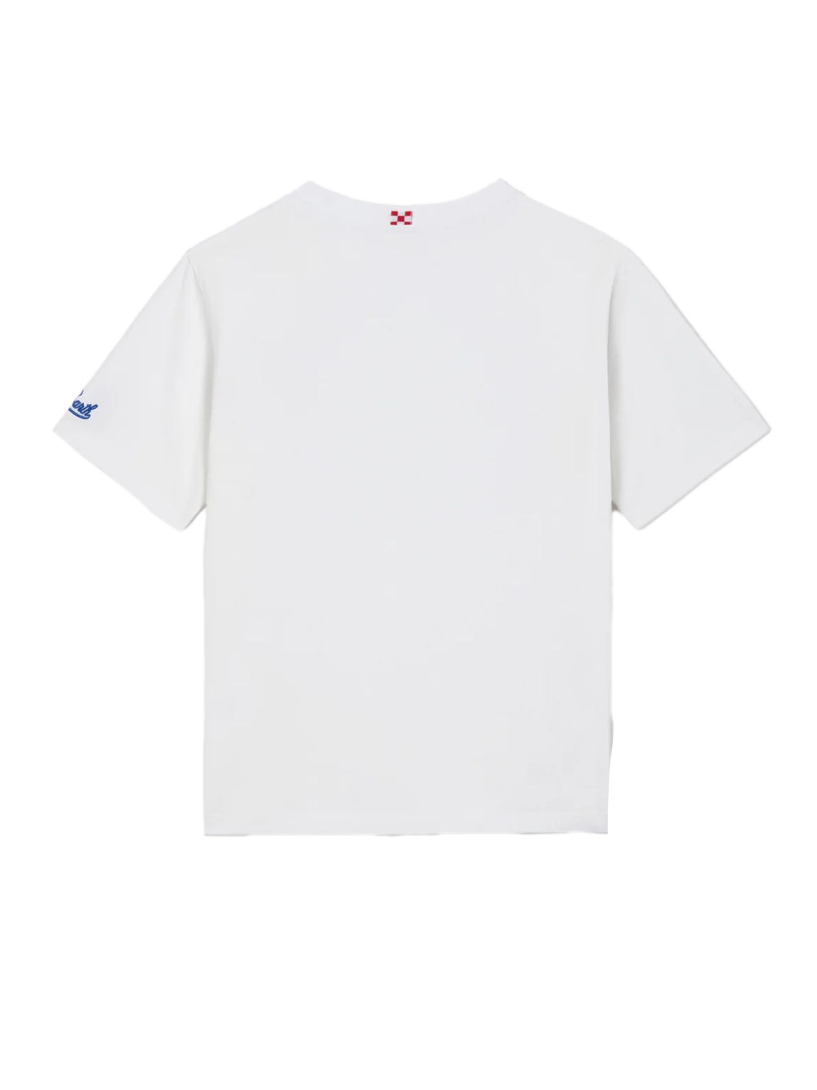 T-shirt Denver Jr con ricamo Super Friends Special Edition, Puro cotone jersey, Bianco, Tinta unita, Ricamo Super Friends sul petto, Stampa supereroi sul petto, Ricamo St. Barth a contrasto sulla manica, Scollo a girocollo a costine, Maniche corte, Linea