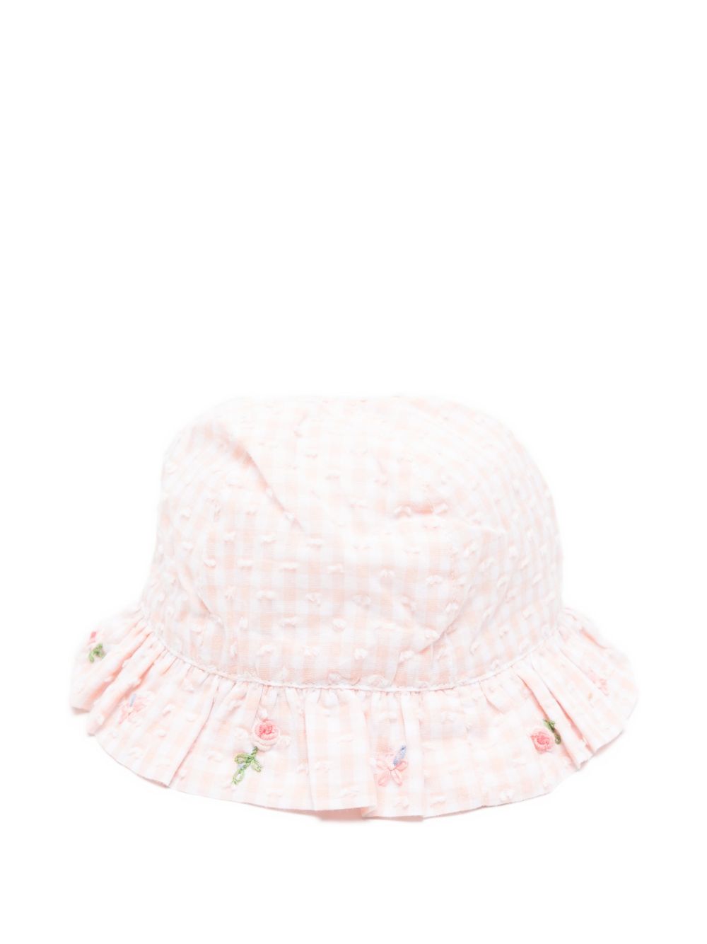 chiusura a tesa arricciata con ricamo floreale a quadretti rosa pallido
