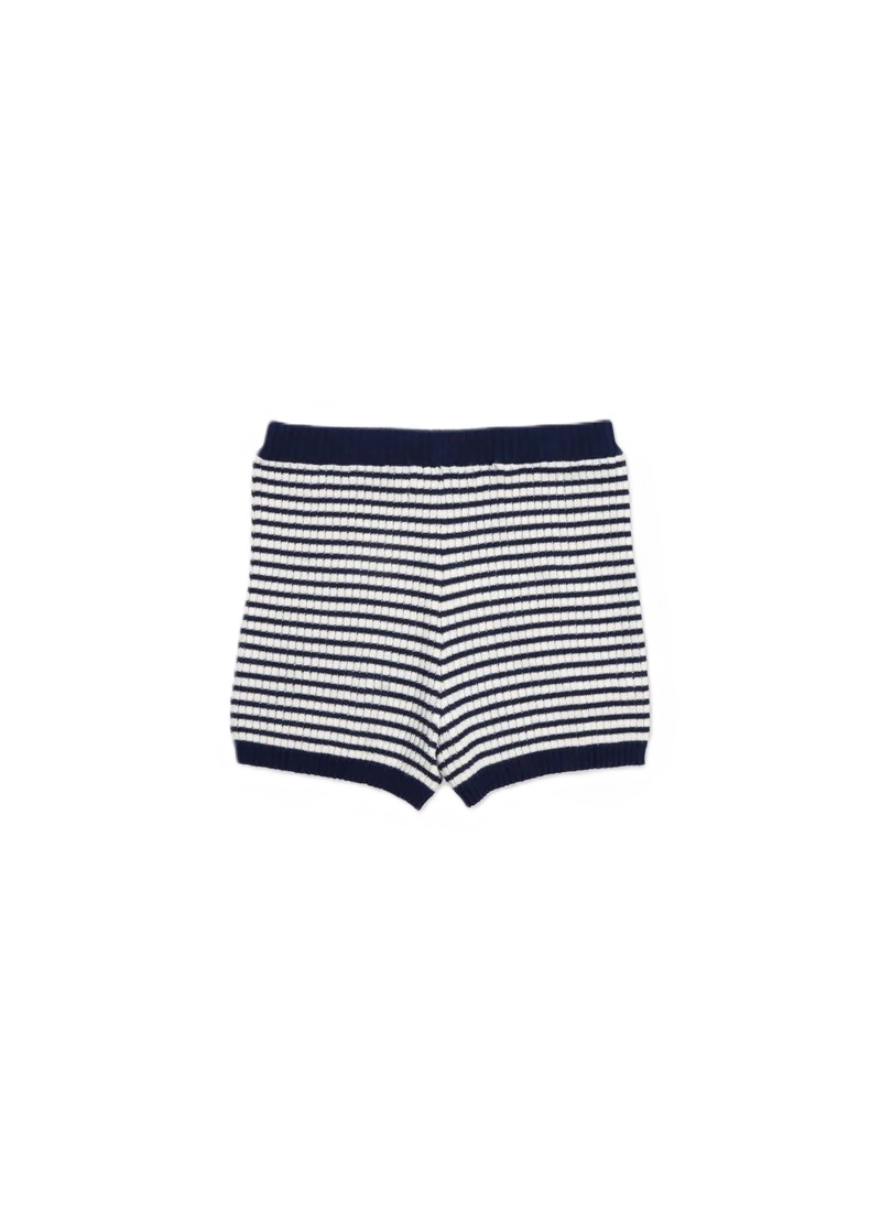 Pantaloncini in maglia leggera con classiche righe in stile marinaro e elastico in vita a coste per una vestibilità comoda. Ideali da abbinare alla polo coordinata per un look estivo disinvolto.