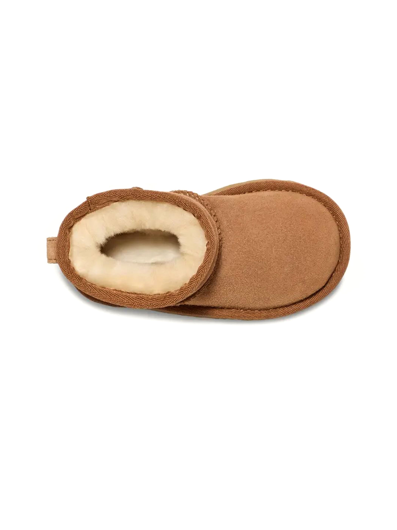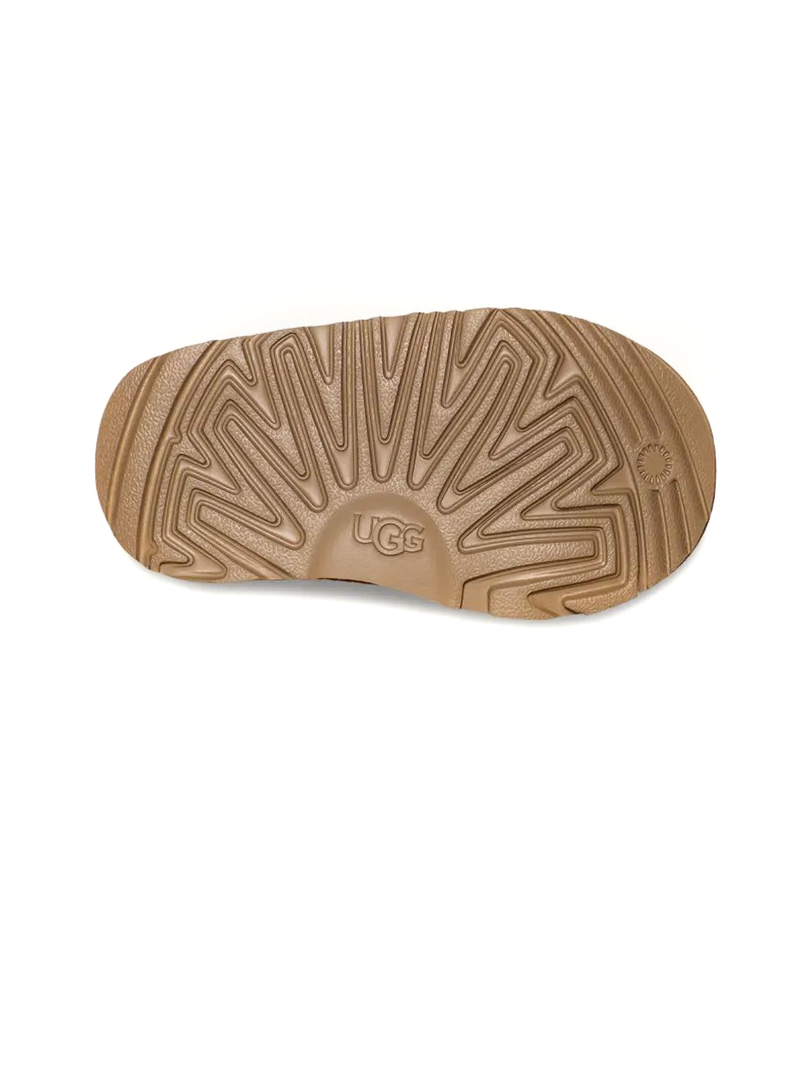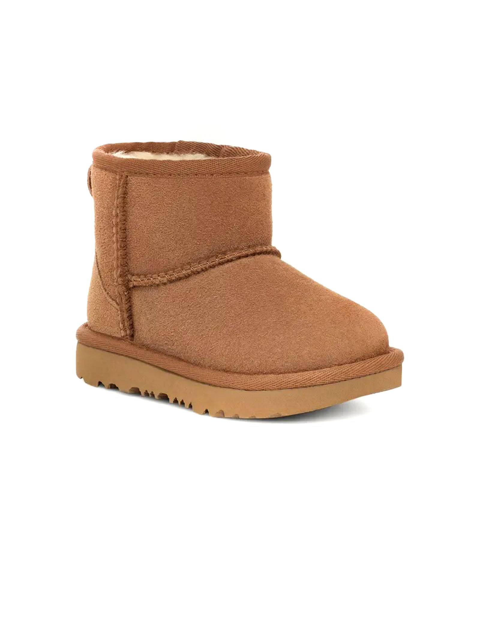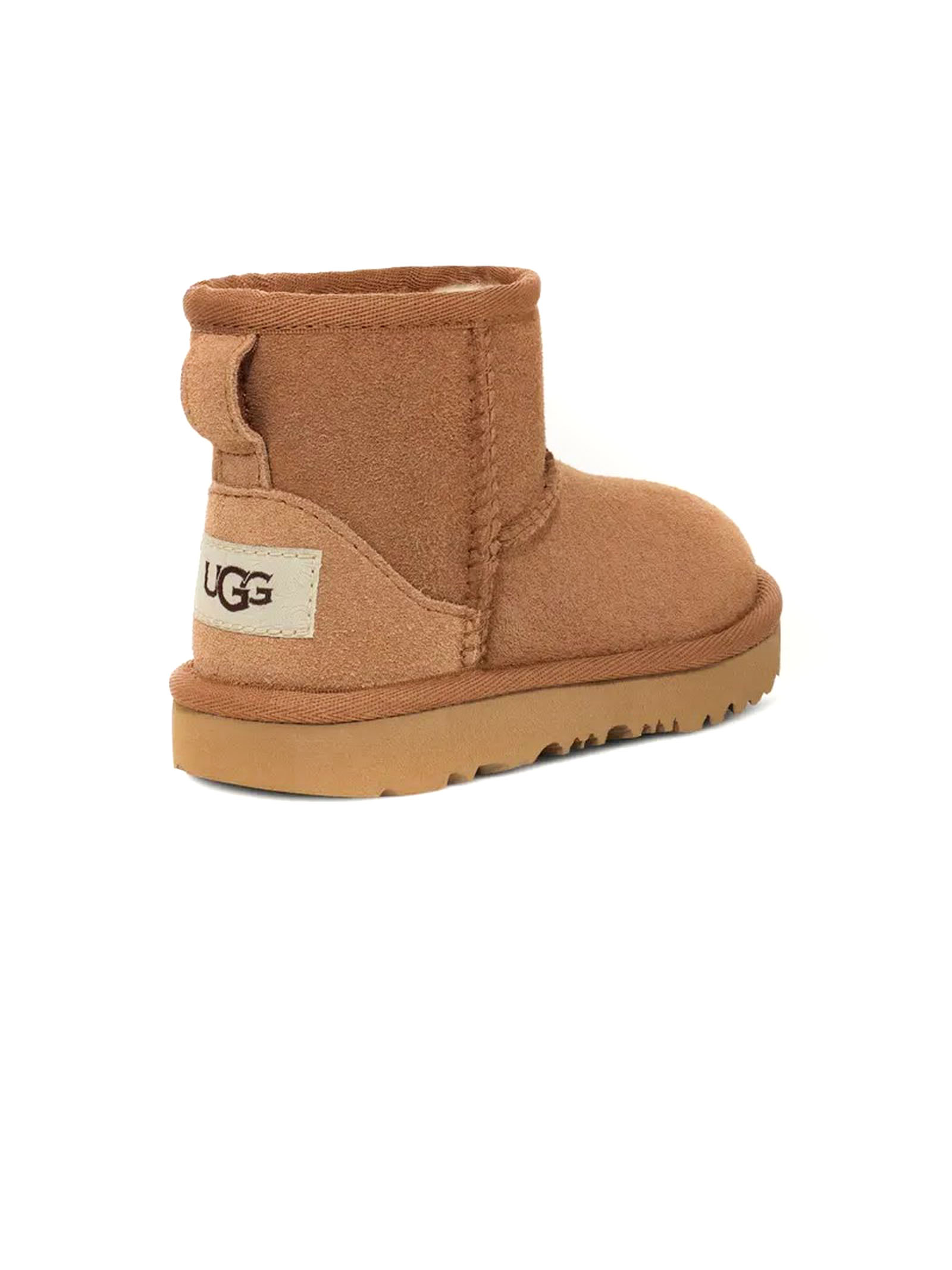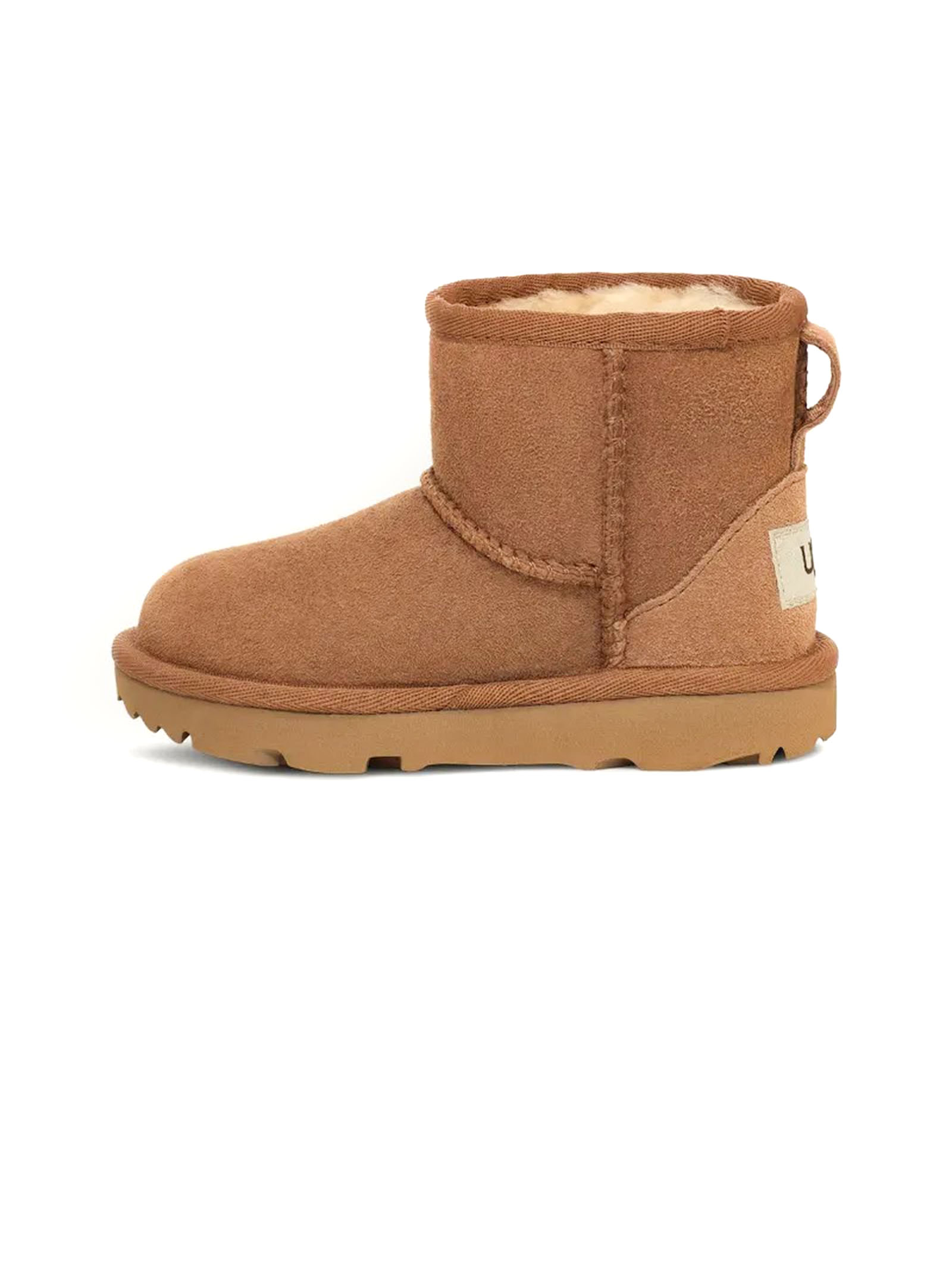 Punta tonda, design pull on, fodera in Shearling, altezza alla caviglia e suola piatta in gomma.